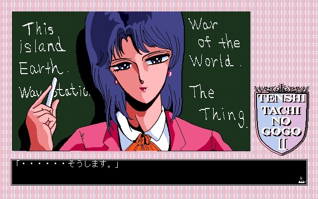 The sequel to "Tenshi-tachi no Gogo"; instead of playing as the obnoxious male protagonist of the previous game, the player takes control of Minako, a female Japanese high-school student with a strong interest towards sexuality. The story mainly depicts Minako's sexual encounters with men and women, which take place on school grounds, in various locations of the city, etc.