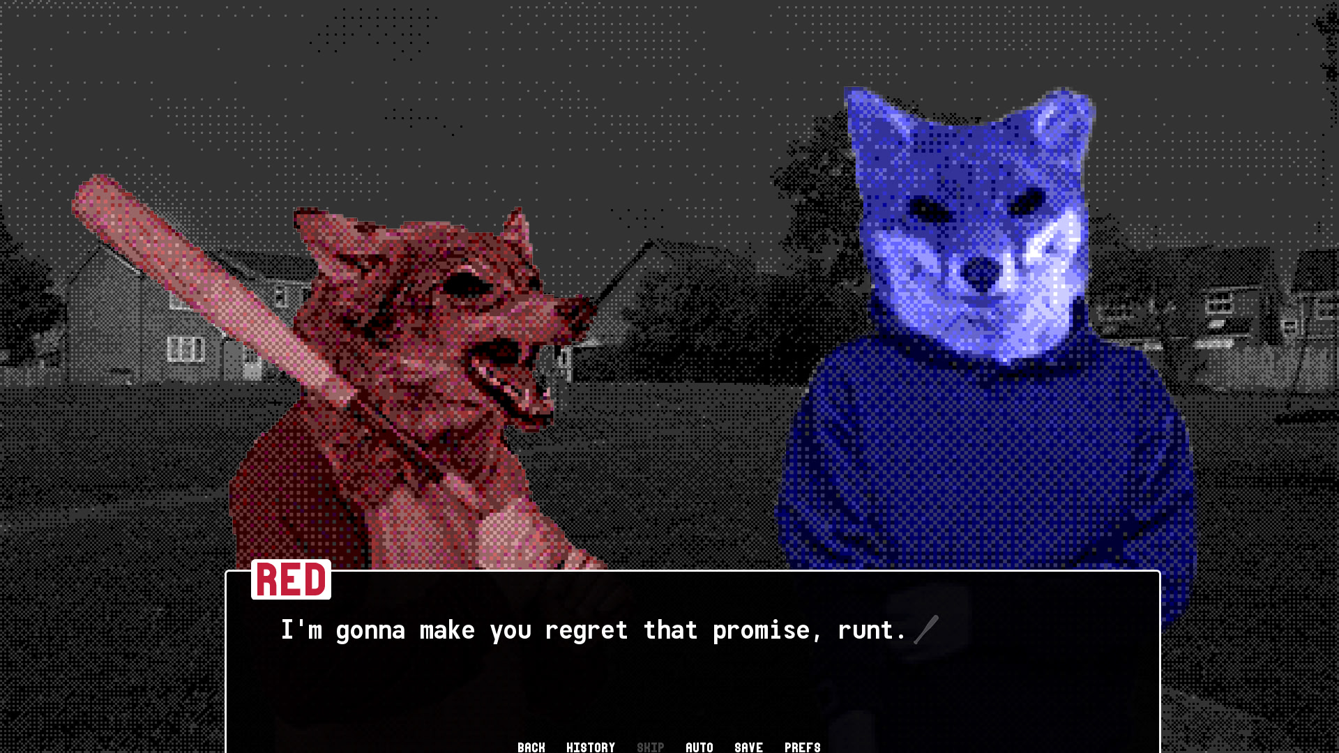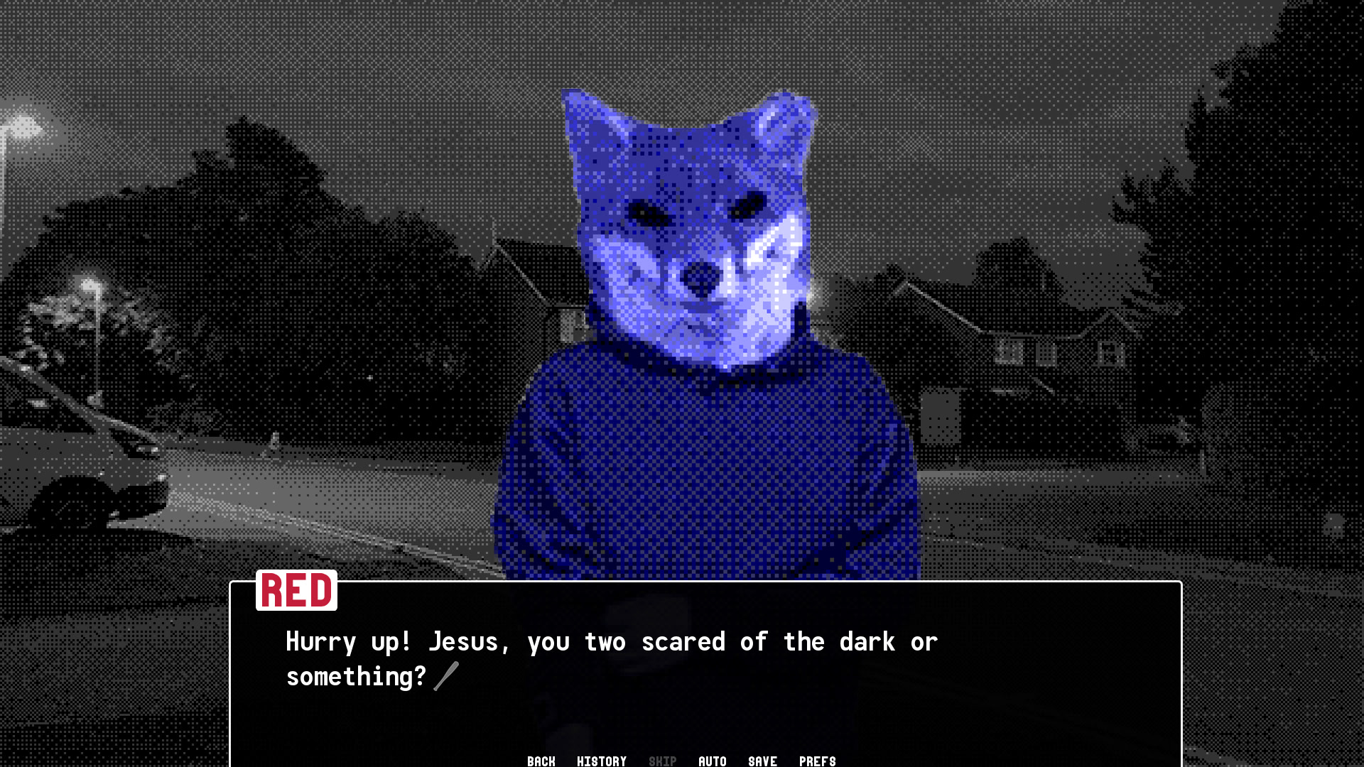 On Halloween, a gang of teenagers in animal masks head out to set off fireworks and drink with their friends. Unfortunately, nothing ever goes right for you. As the night grows darker and pranks turn to violence, your friends start to change. Will you? itch.io]