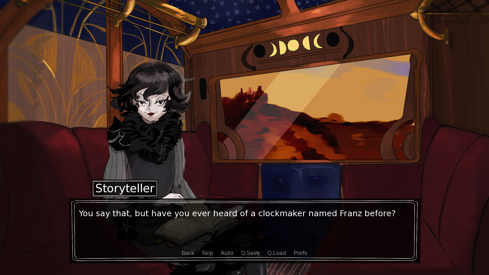 “We’re both traveling alone, it seems, and we’ve got a while to go until the next station. To pass the time, why don’t I tell you some stories?”