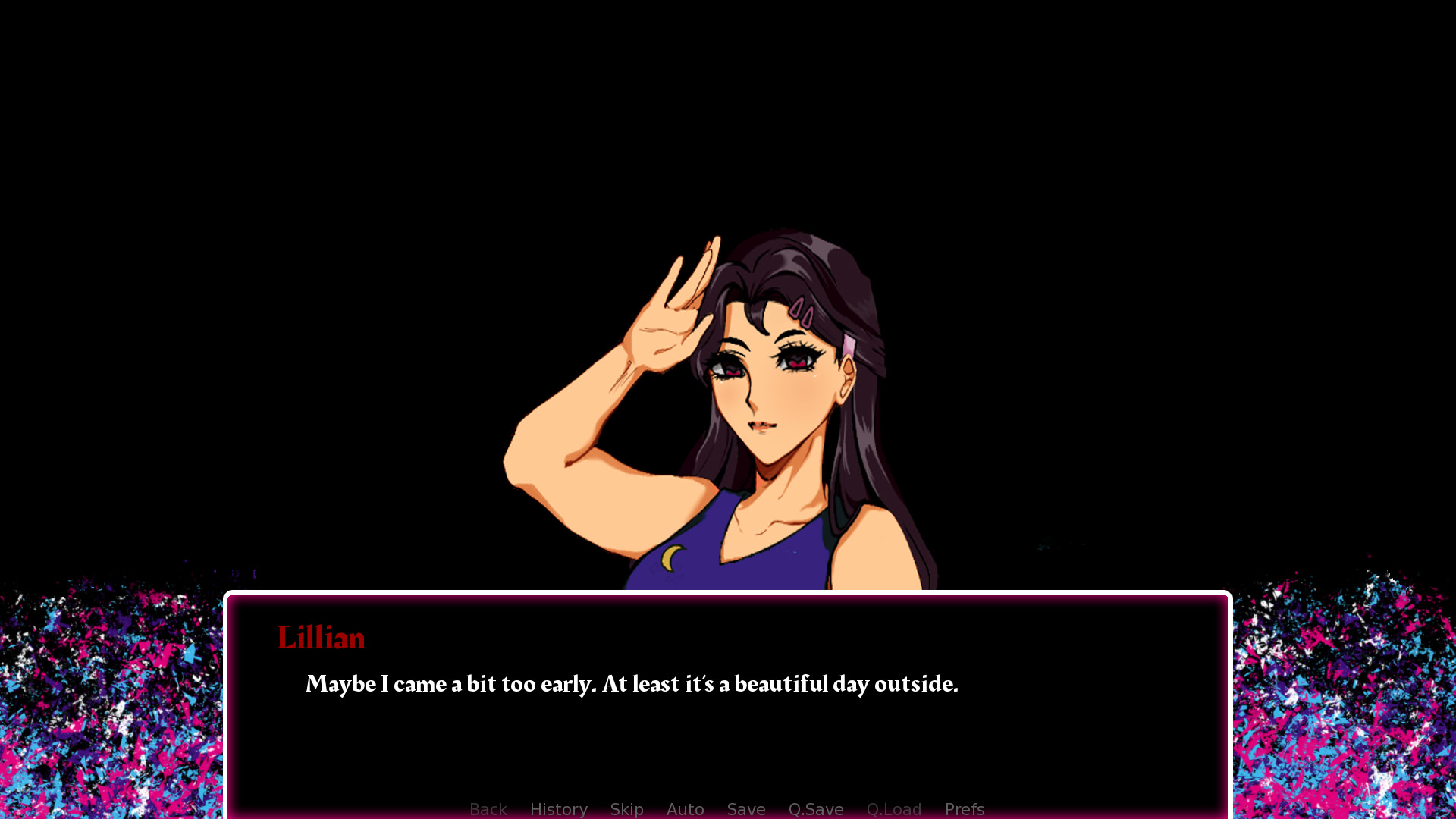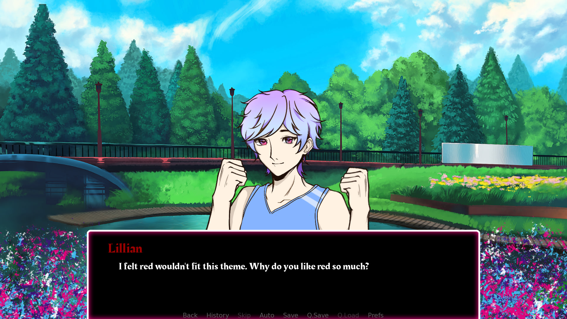Lillian, a college student who is about to graduate, waits for her boyfriend, Aaron, at the park. He has a special day planned for her that she will remember until death do us part. Itch.io]