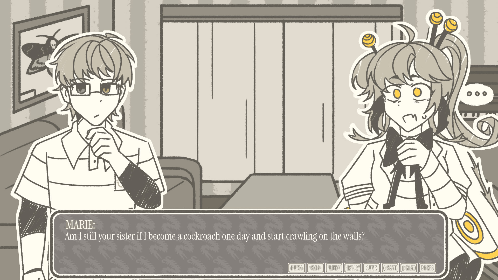 Guide either Franz or Marie through one of the most stressful moments of their life- suddenly waking up as a half-human, half-bug abomination. Alongside your sibling, explore the house for something useful to get yourself out of this predicament.