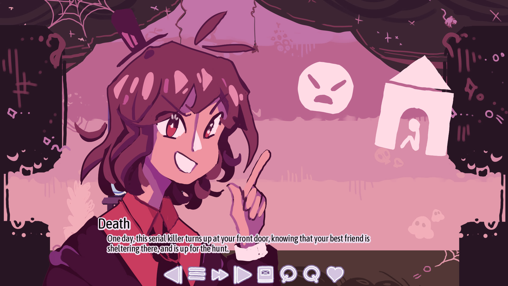 You are a sinner. Do you know what happens to sinners when they go to Hell? They appear on Hell's best (and only) late-night television program; THE DEATH NIGHT SHOW! If Death considers you entertaining, he might let you escape a gruesome afterlife punishment. After all, boredom is the biggest sin in Hell! What will your afterlife look like?