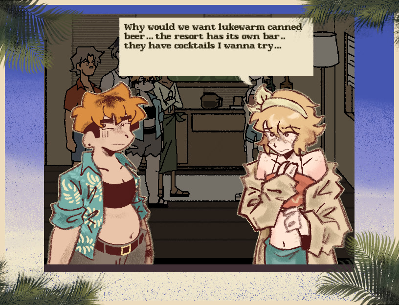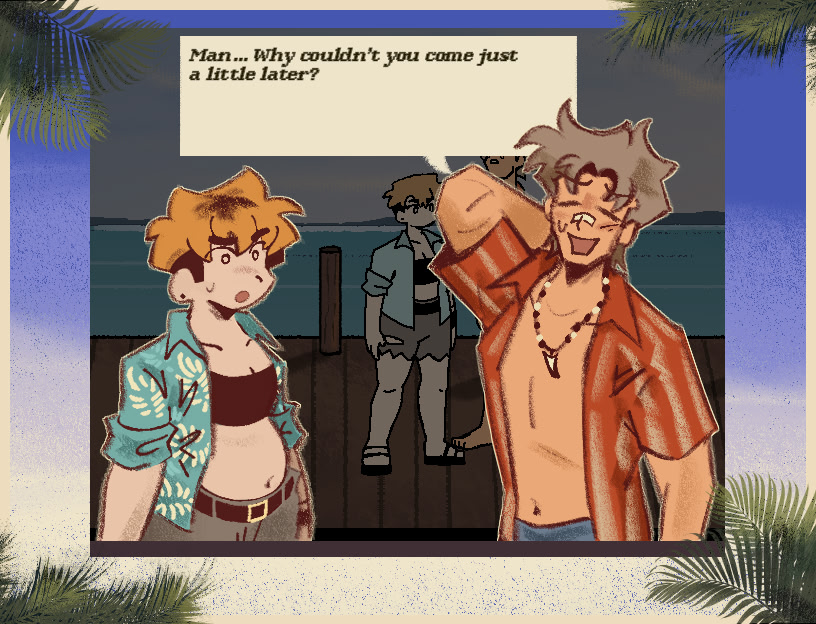 Rot in Paradise is a short 2D horror visual novel set in October of Australia, following the story of a vacationist named June and her friends on a weekend getaway at an island resort where they have no choice but to go with the tides.
