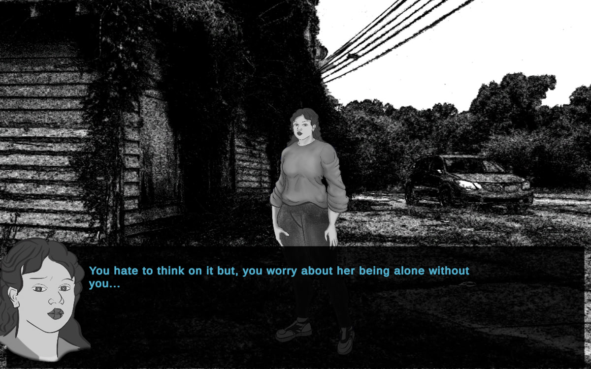 A visual novel where you play a young woman at the precipice of Adulthood in the 80s in the Southern US. Everything seems on track for her to be stuck managing the burden of her life until an unexpected series of events leads to a life altering choice.