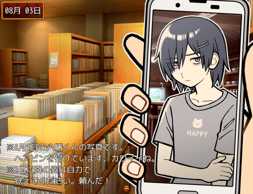 Point out the changes in your boyfriend Yahata-kun! If you fail, you get reset back to August 1st and Yahata-kun's pattern changes. ※Find things about Yahata-kun that are different from yesterday. ※The changes aren't random. Sorry. "Let's make a game with a strong female protagonist" is what I ini...