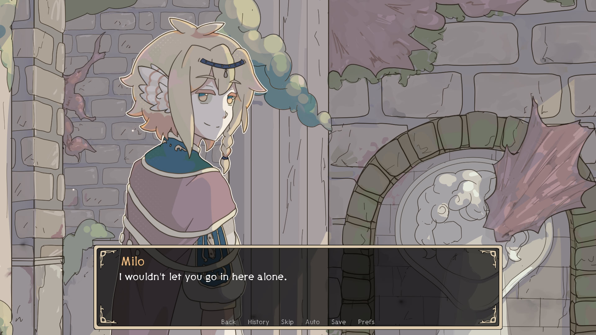 "Holomony" is a short kinetic visual novel about two adventurers getting trapped in a shifting dungeon-- are they in over their heads?