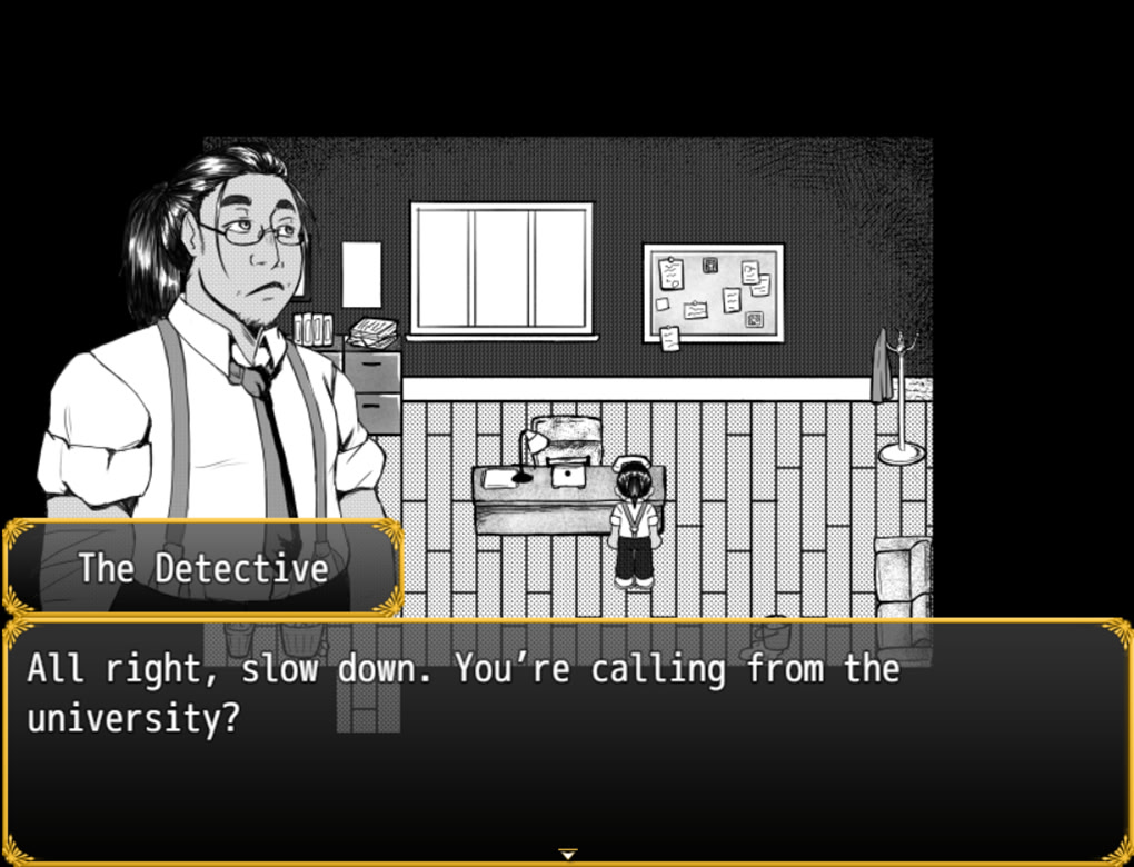 You're a detective. On a slow night like any other, you get a call. There's been a murder at Chambers University. The voice on the other end seems to believe that you're the only one that can figure out what happened. The scene that was set before you arrive is off, and it's up to you to figure out why.