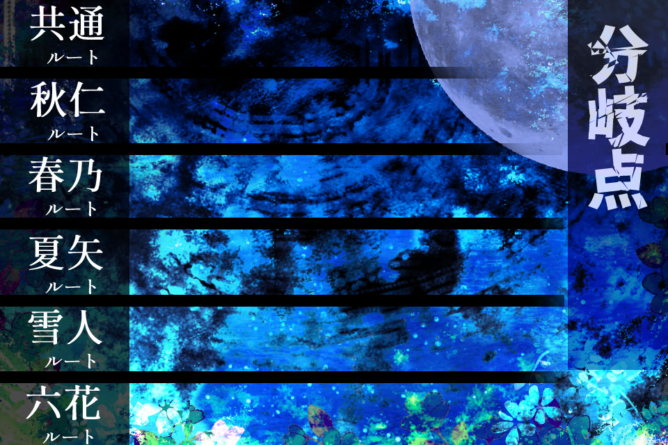 Tsukimiya Rikka was born as a Moon clan descendant and given the responsibility as a shrine maiden to perform healing ritual. In exchange of her healing power for the entire Tsukimori village, she's carrying the curse of shortening her life if she continuously use it. Thus, she is faced with the obligation imposed upon her by her clan to choose a partner and have children limited from Tsukimiya family. Who should she choose? Her half-brother, her cousins, or...
