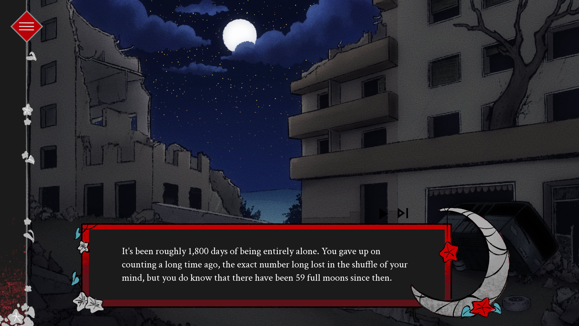 You're entirely alone-- until you're not. Entirely out of place, entirely by surprise, a mysterious person appears in your apartment. The first person that you've seen in years-- and then they're gone again, just as quickly. It's undeniable that something is changing, and that is has to with this stranger--