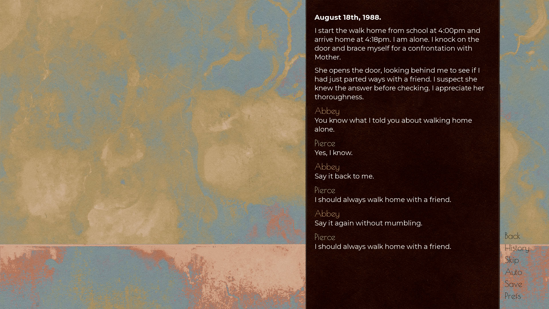 On August 19th, 1988, you marched from your grave to the front steps of what used to be your home. On September 5th, 1988, you will leave our home again to die your second death. itch.io]