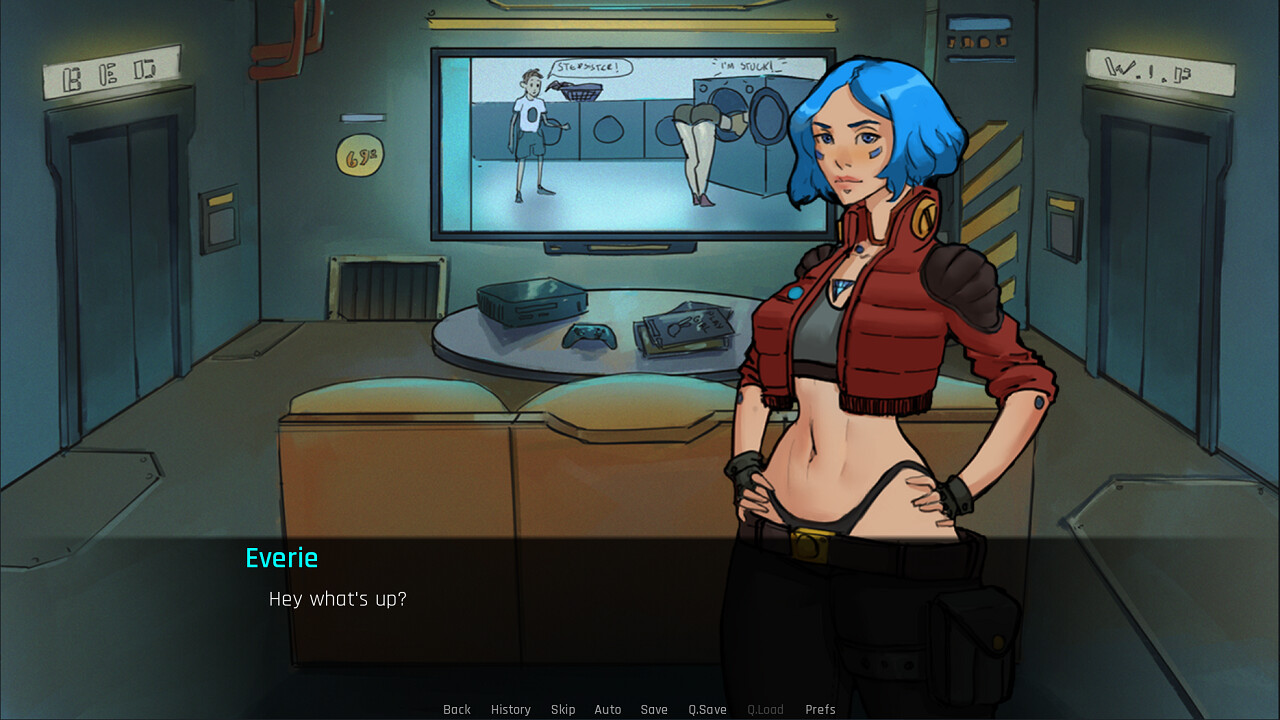 You are the main character, a young adventurer type who decides to take your ambitions upward (literally) and travel into space in search of a long lost treasure. Your journey will take you across the universe in search of any clues that might bring you one step closer to that prize. Traveling the galaxy is no easy task alone, but you will meet many interesting people (and sexy girls) along the way. Your first encounter along the way is with your new traveling companion, Everie. She is a humanoid automaton left for dead on a derelict junk planet to be destroyed, but you find her before that can happen. She joins your crew and quickly becomes more than just a crewmate, and she’ll help you do whatever (or whomever) it takes to help you in your journey.