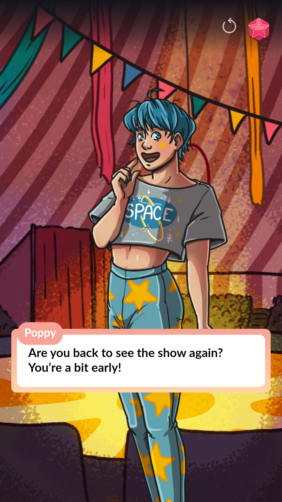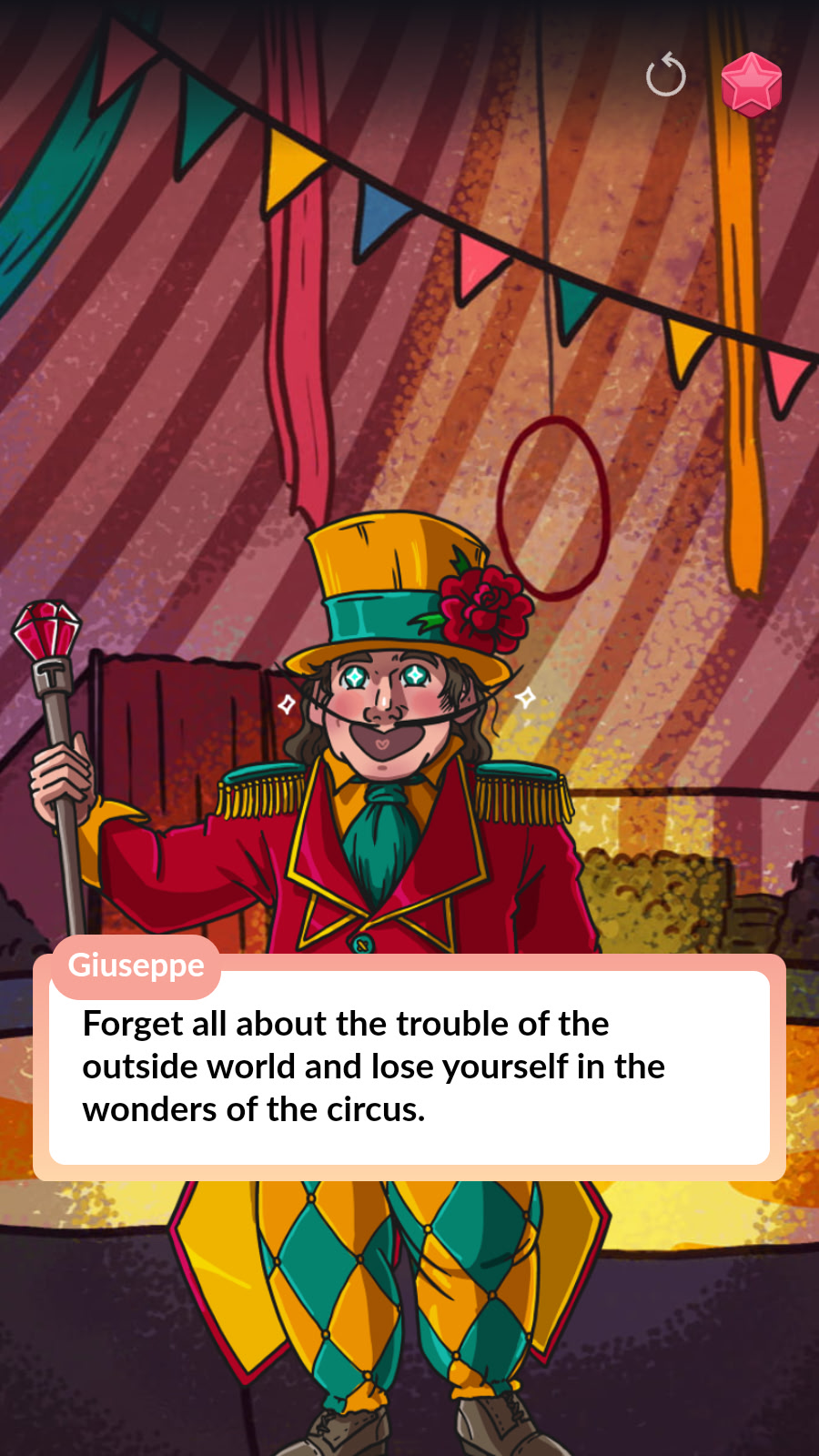 Roll up, roll up! Get to know an arrogant acrobat, a caring cowboy, a meek magician, and a colourful clown. Will you save the circus or doom it? Dorian app]
