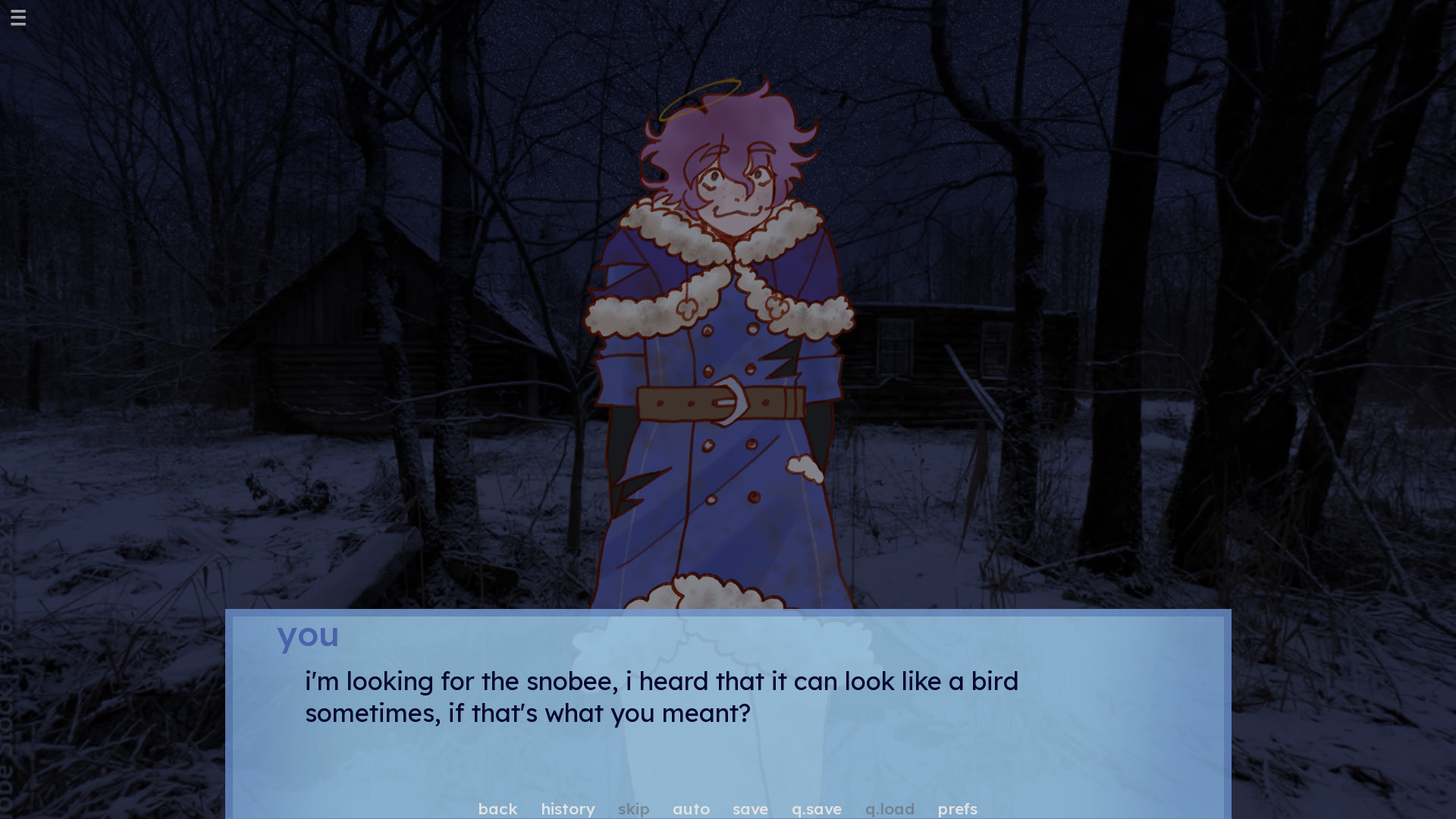 snobee searcher is a game where you, the player, go on a hunt for the elusive cryptid snobee. you are faced with decision after decision, each leading you to one of nine possible endings! will you survive? Itch.io]