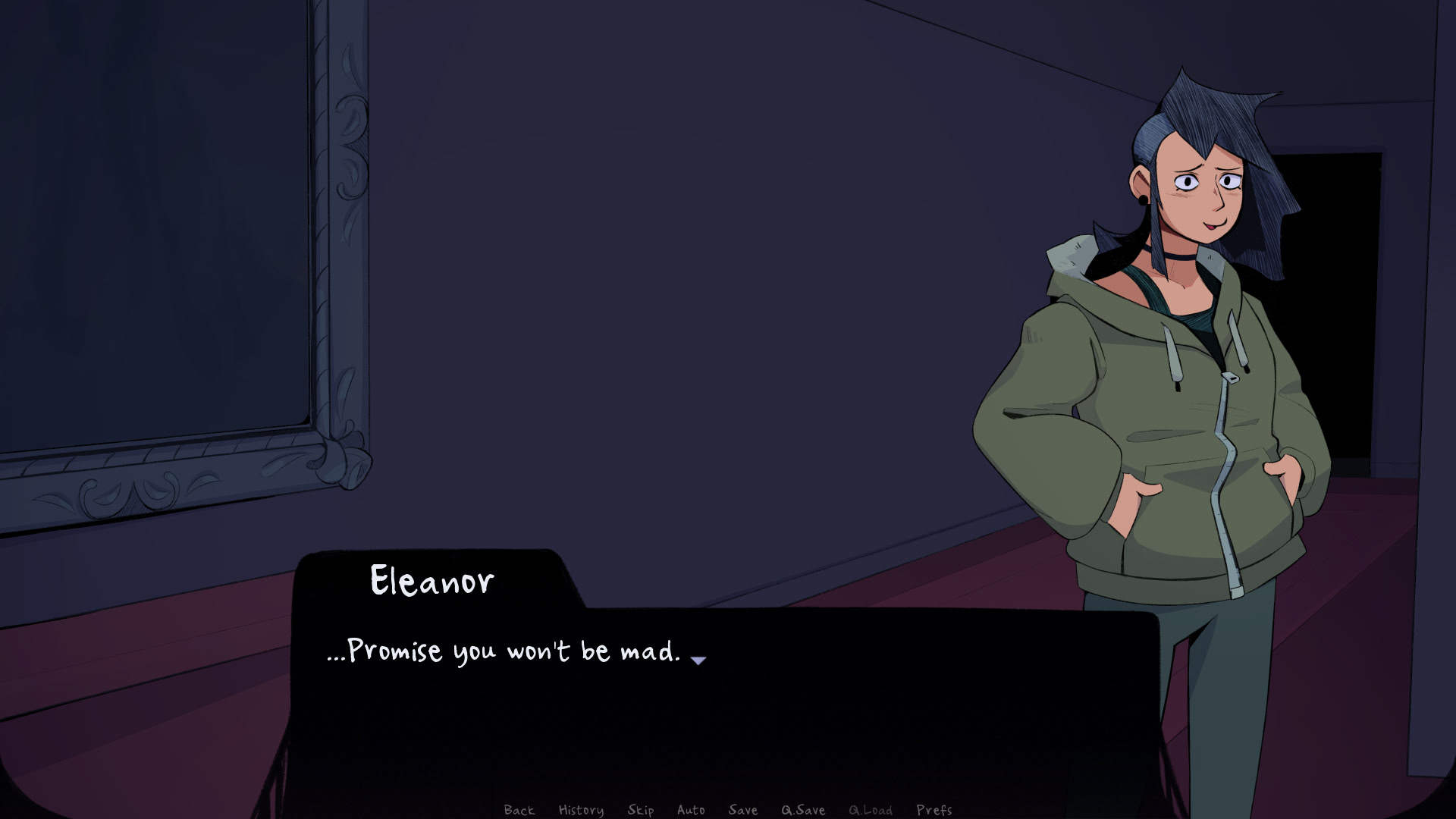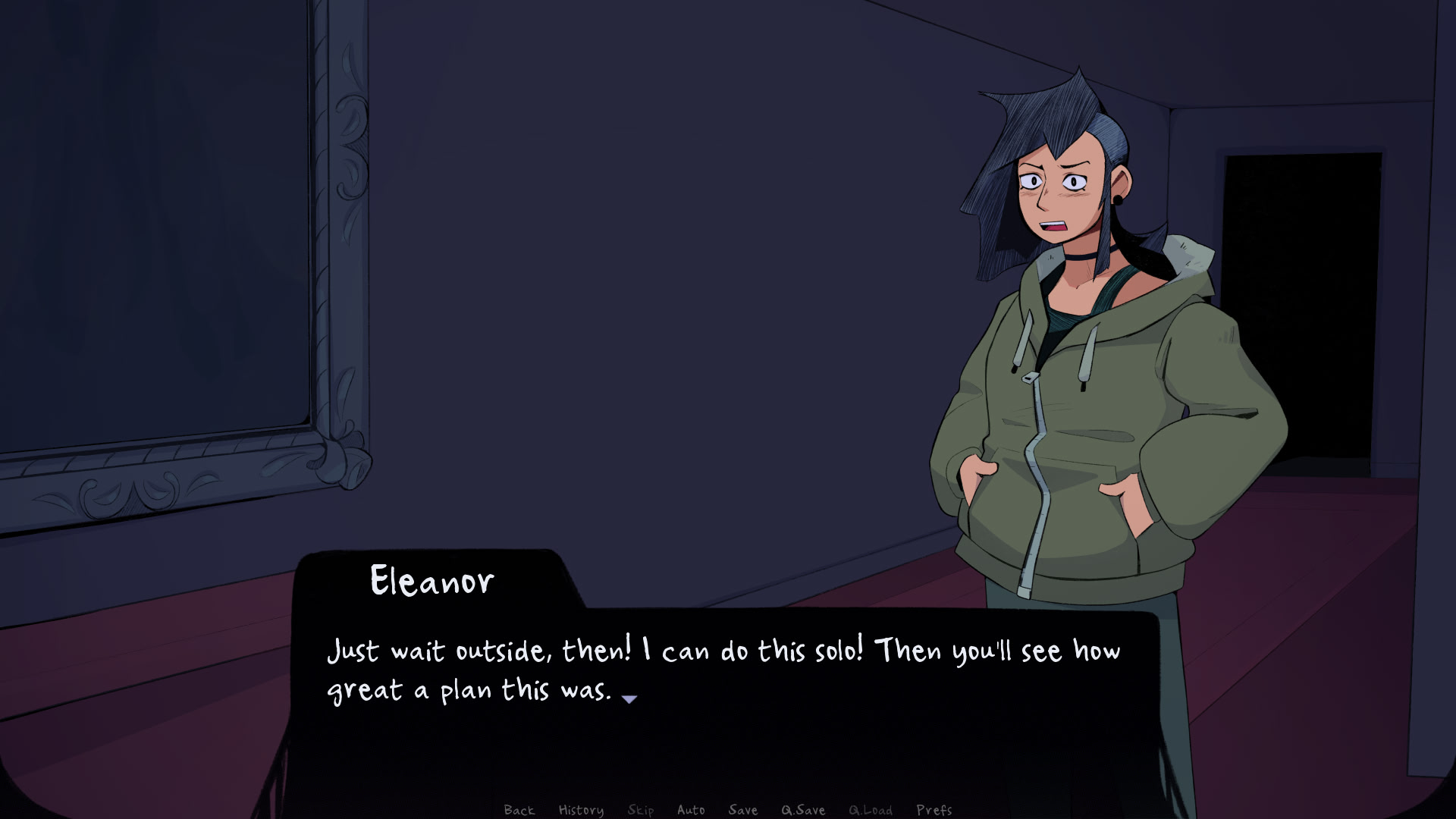 Two thieves, Eleanor and Sylvia, have broken in to steal a painting, but Syl thinks the whole ordeal seems poorly thoughtout. Surely now is the best time to argue about it. Itch.io]