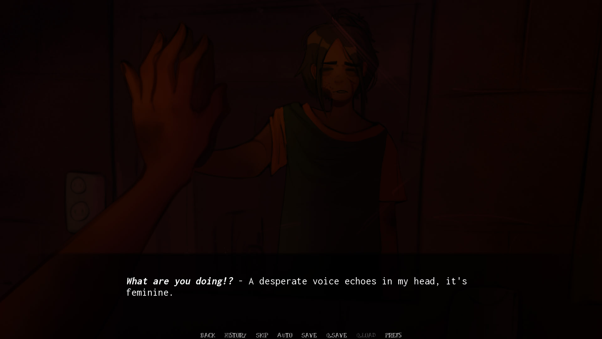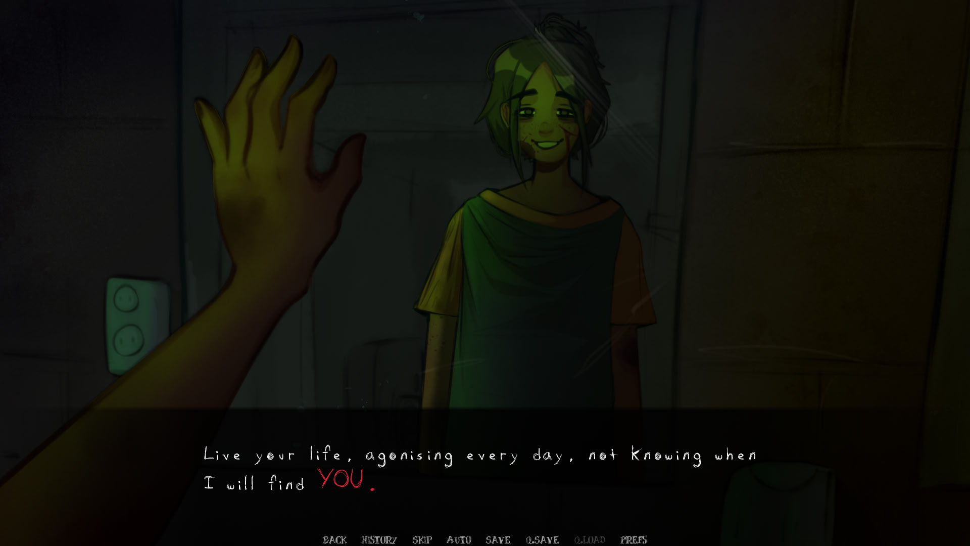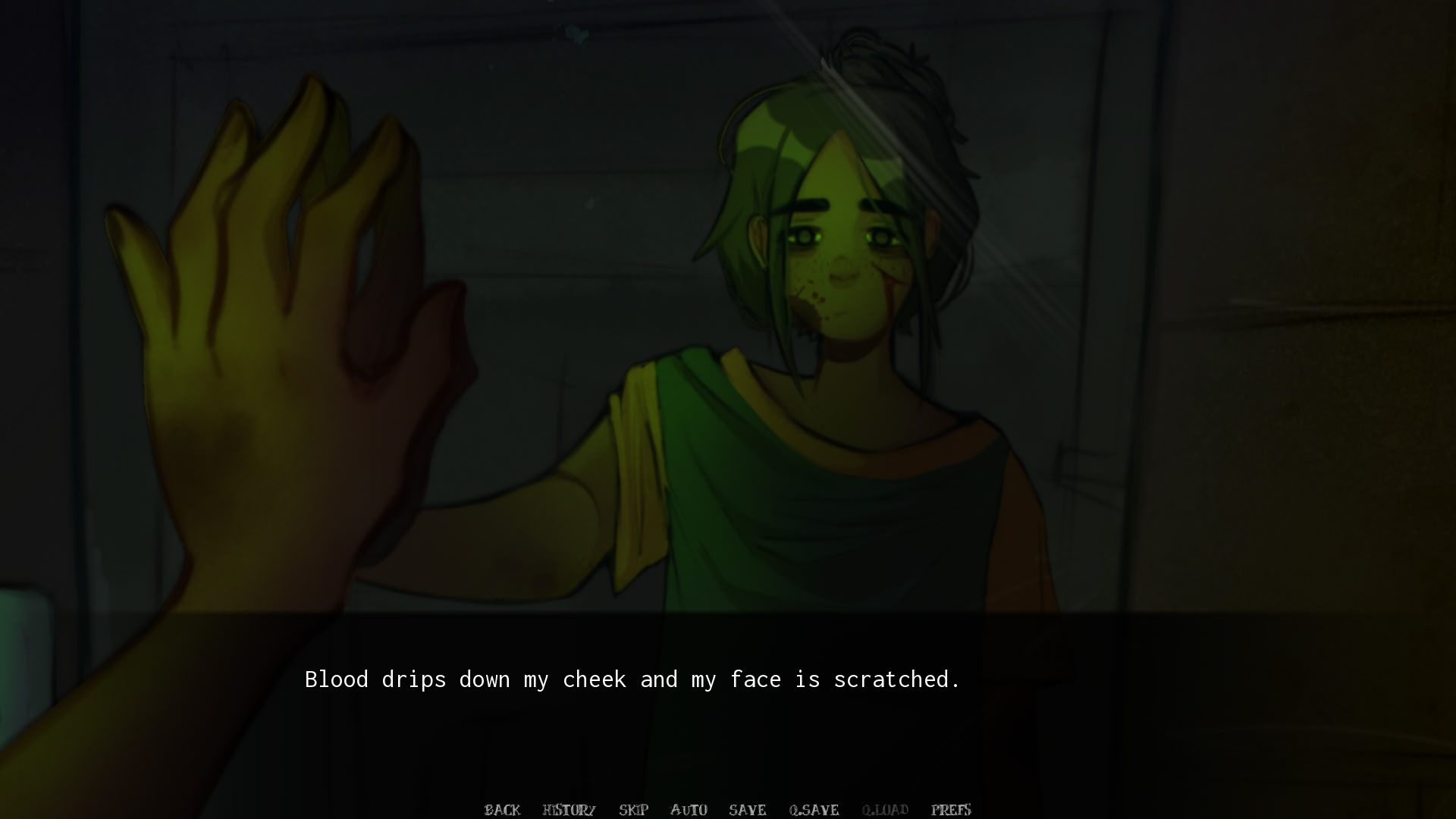 A young girl finds herself in a public bathroom. She doesn't know how she got there and she's covered in wounds. Why doesn't she remember it? Why is she injured? Itch.io]