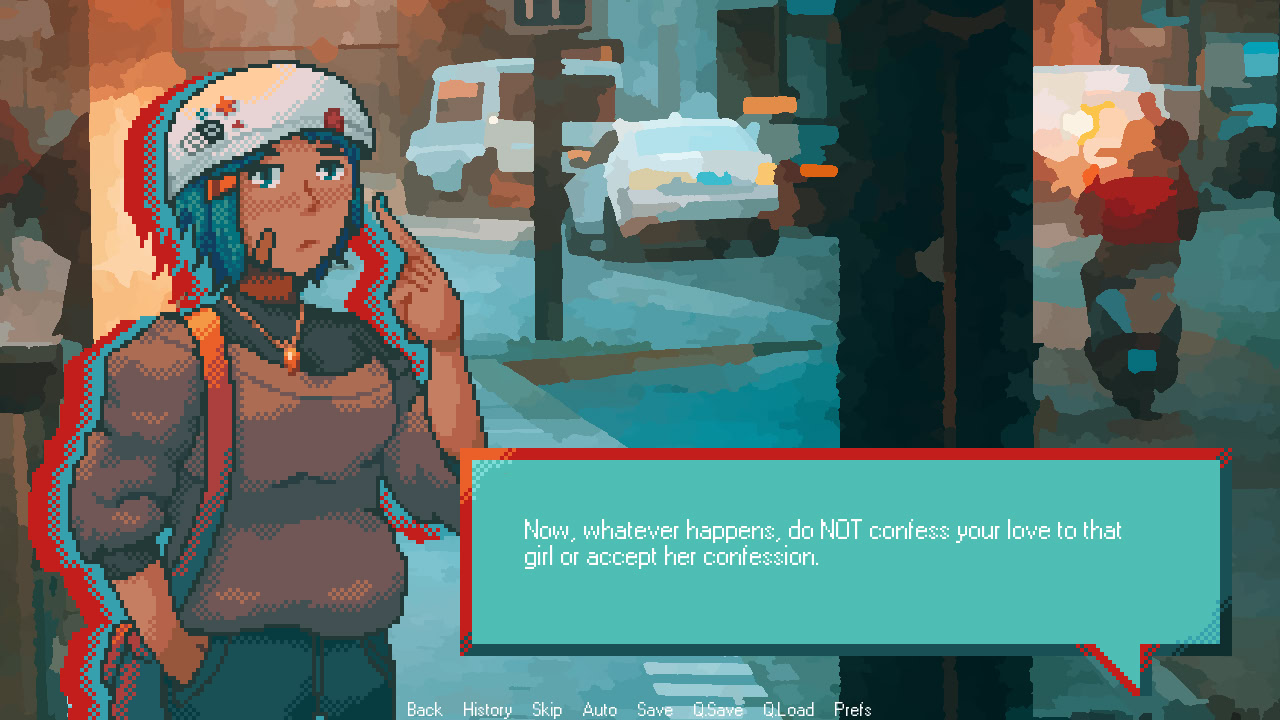 Cyclestance is an anti-romance micro visual novel about cycling the past to prevent yourself from making a colossal mistake. Can you actually prevent it, though?