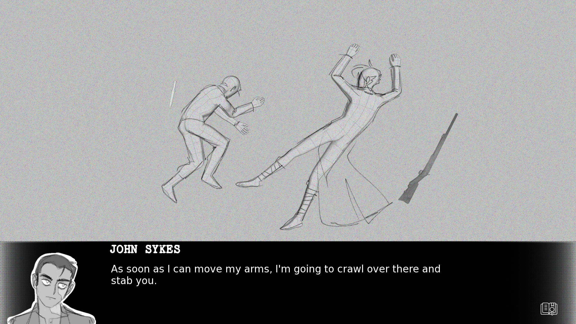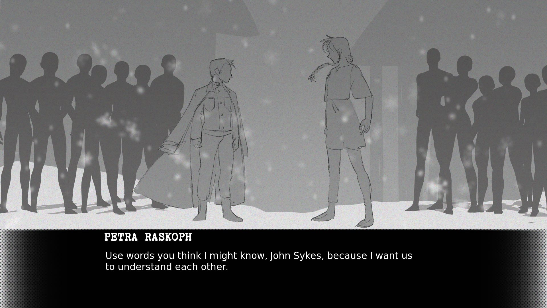 At the climax of a desperate war for farmland, John Sykes and Petra Raskoph fought a duel to the death. Dragged away to safety by their comrades, both of them survived.