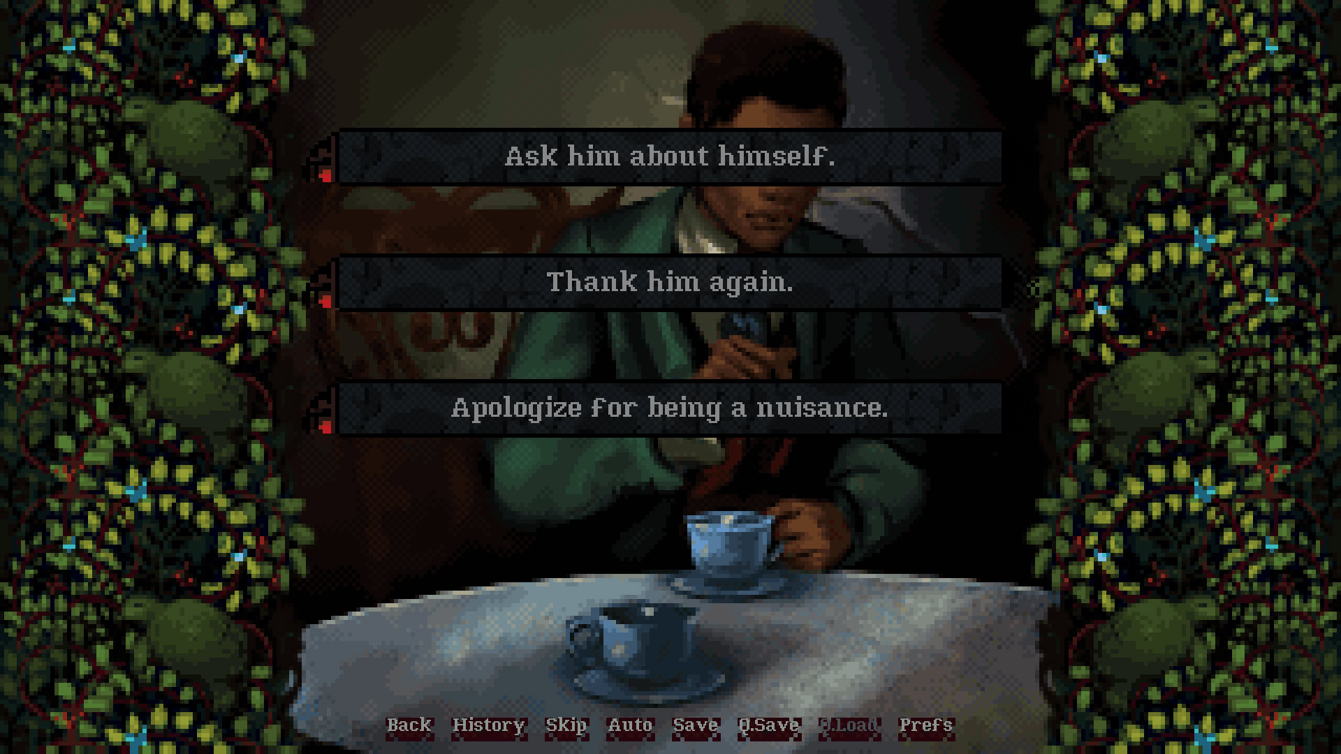 When Cassie gets hopelessly lost in, of all places, the small town she just moved to, she is relieved to meet a friendly stranger who can set her on the right path. Unfortunately, there is something not quite right about the stranger - or her surroundings. itch.io]