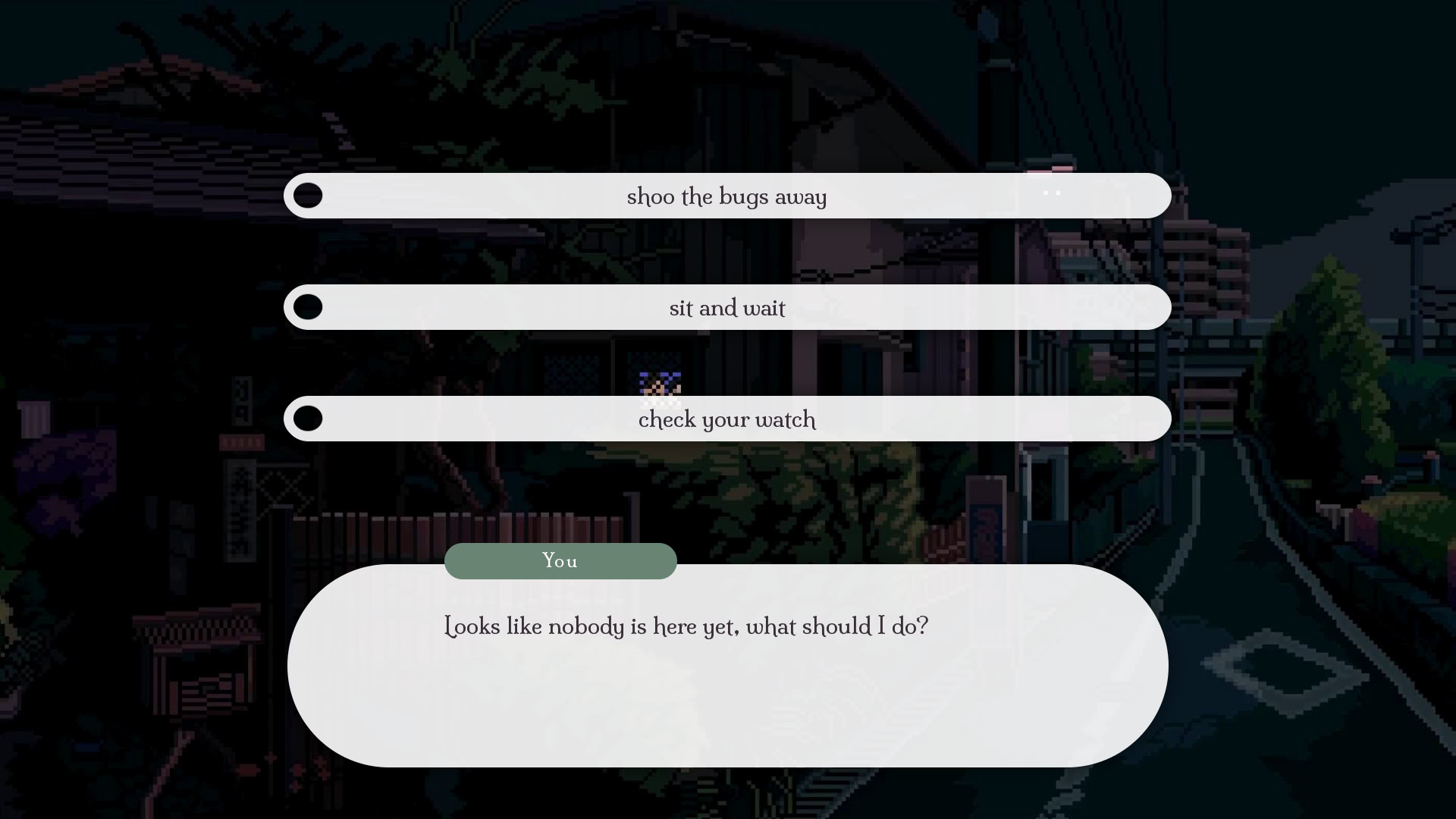 It's late and dark, but you've received the strangest of notes, and curiosity is in the driver's seat. Who or what will be meeting you outside the park under the brightest street lamp? Itch.io]