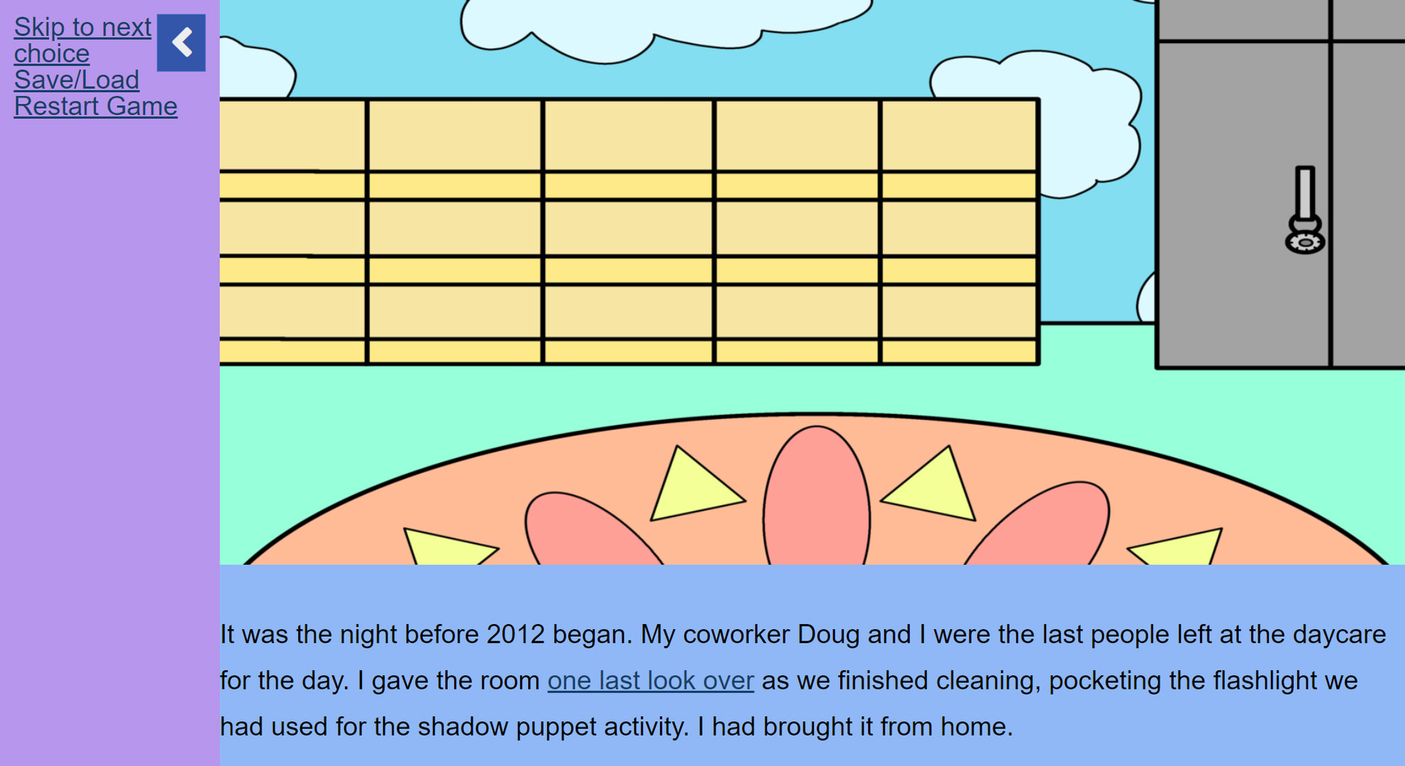 Romance The Backrooms is a F/M dating sim VN about Carla, a daycare worker who falls into the titular liminal space by pure chance. Thankfully, she meets a group of 5 humanoid entities who are willing to help her get back home. On the way, Carla, who’s had no time for love because of her work, finds herself becoming smitten with one of the entities. Will she get out of the backrooms with her love intact?