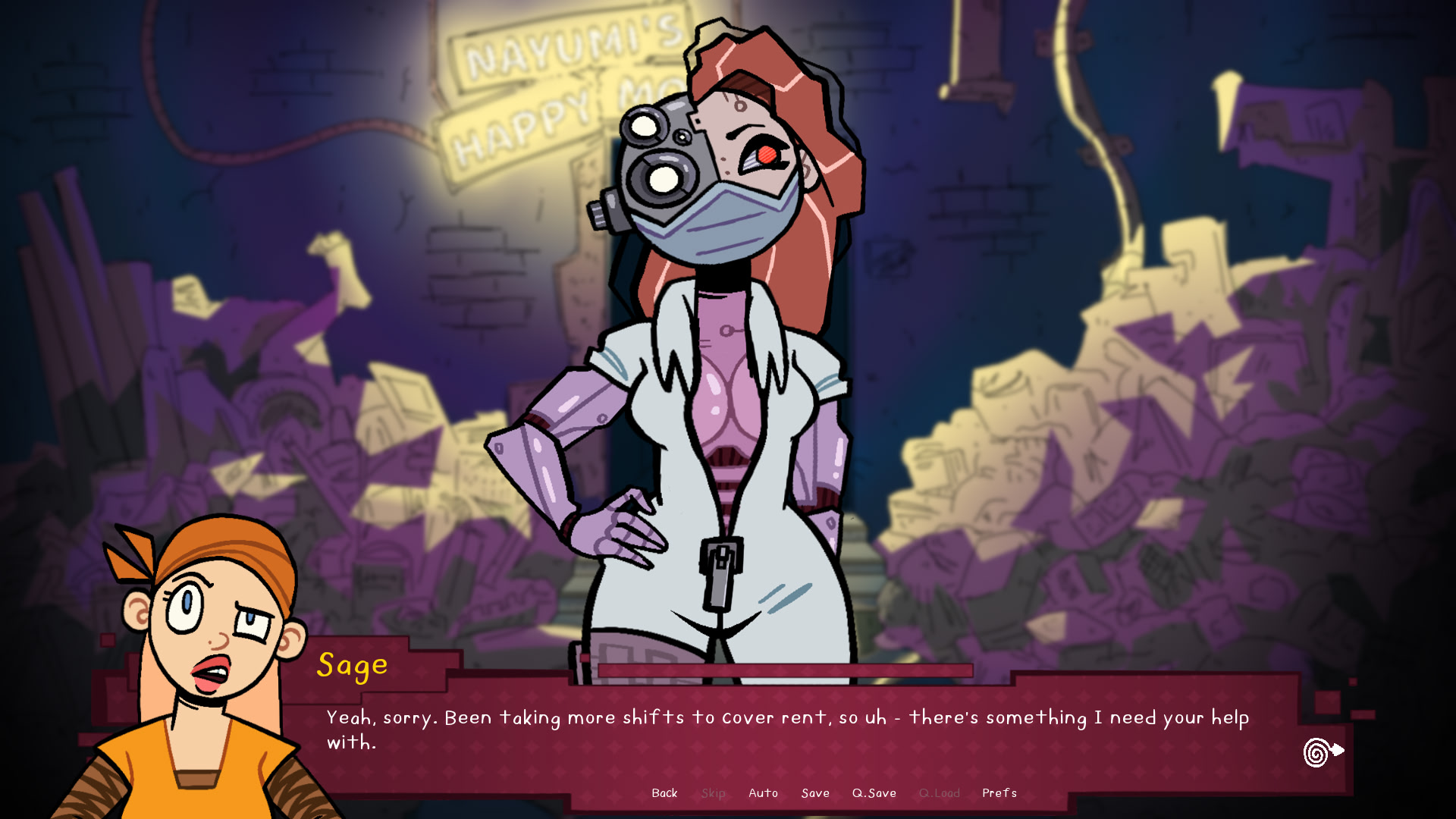 Experience a josei body horror adventure game that will make your skin crawl. You are Sage, an average thirty something woman living in the cyberpunk city of Blore. As you leave from work, you are attacked by a parasitic creature that claims to know everything about you. What will you do? Embrace th...