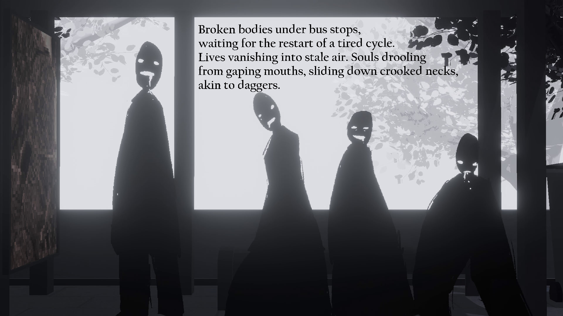 A quiet town awaits death. Stagnation is the default state of being. Those who dare to hope are seen as demented. Two aimless young women fall in love. I lost my soul somewhere along the line. It must have slipped, fallen into a storm drain, vanished. It dissipated in that putrid water. itch.io...