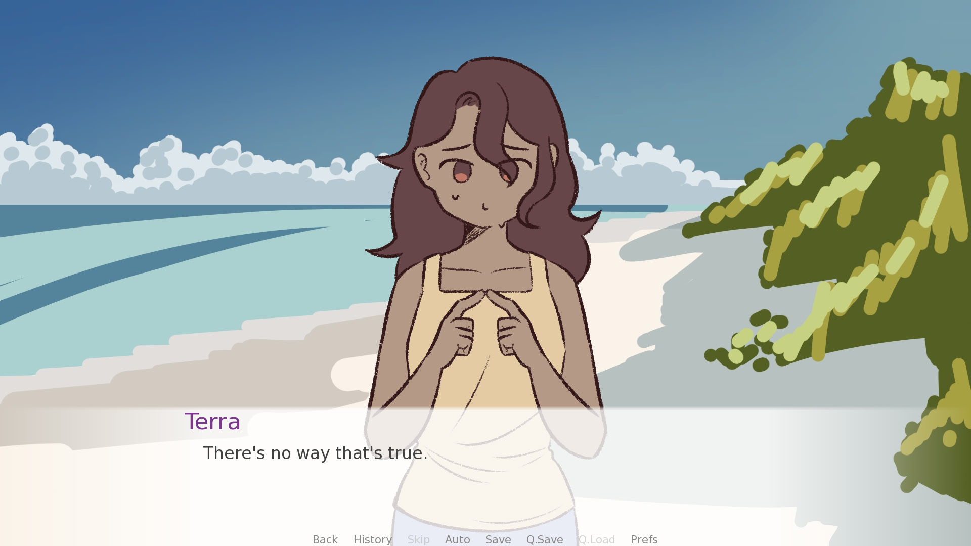 The story follows two girls who end up on a deserted island that seems to have strange properties. Distraught by the situation and troubled by her not-so-platonic feelings toward her best friend, Terra is faced with a few tough choices. itch.io]