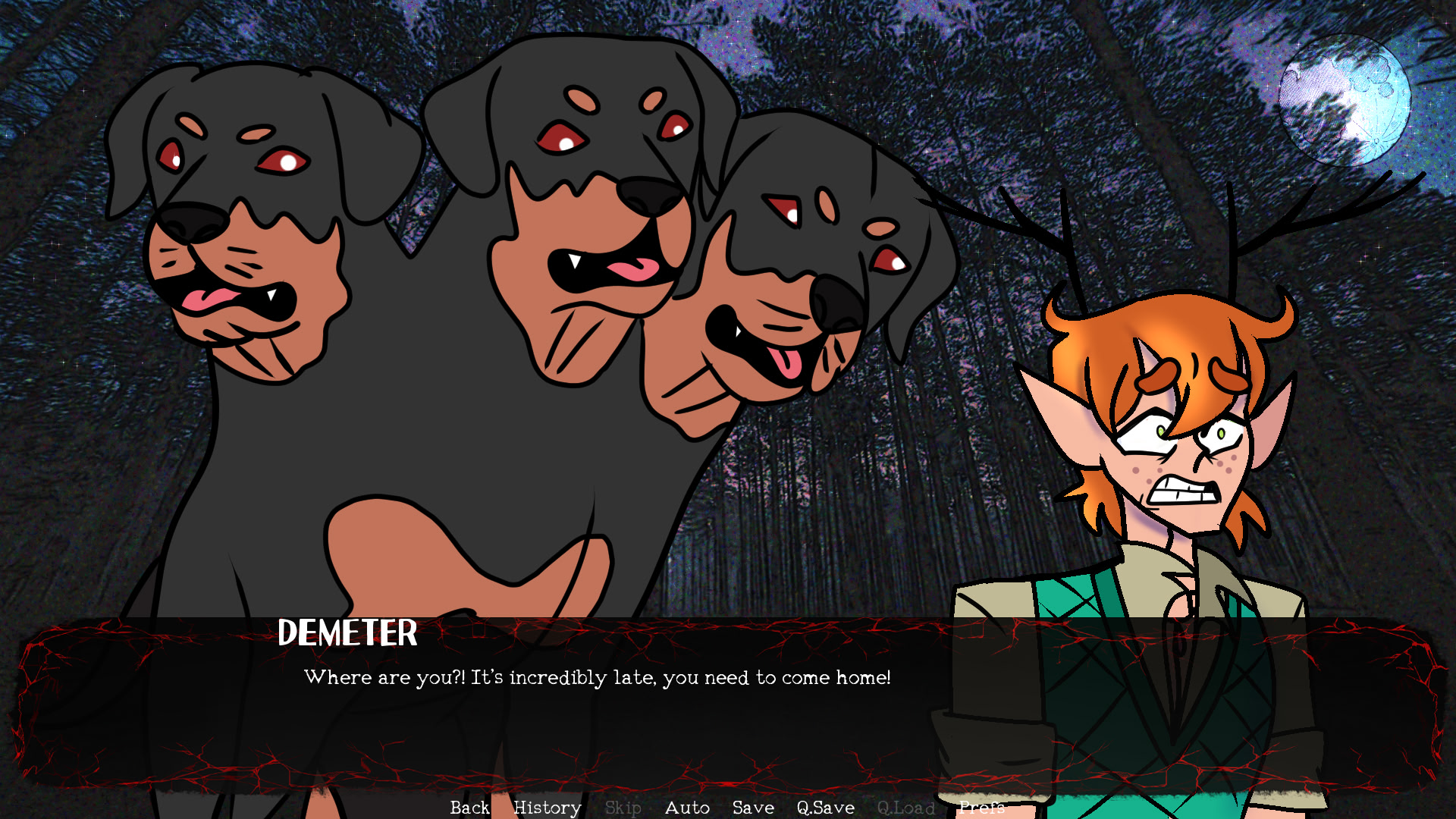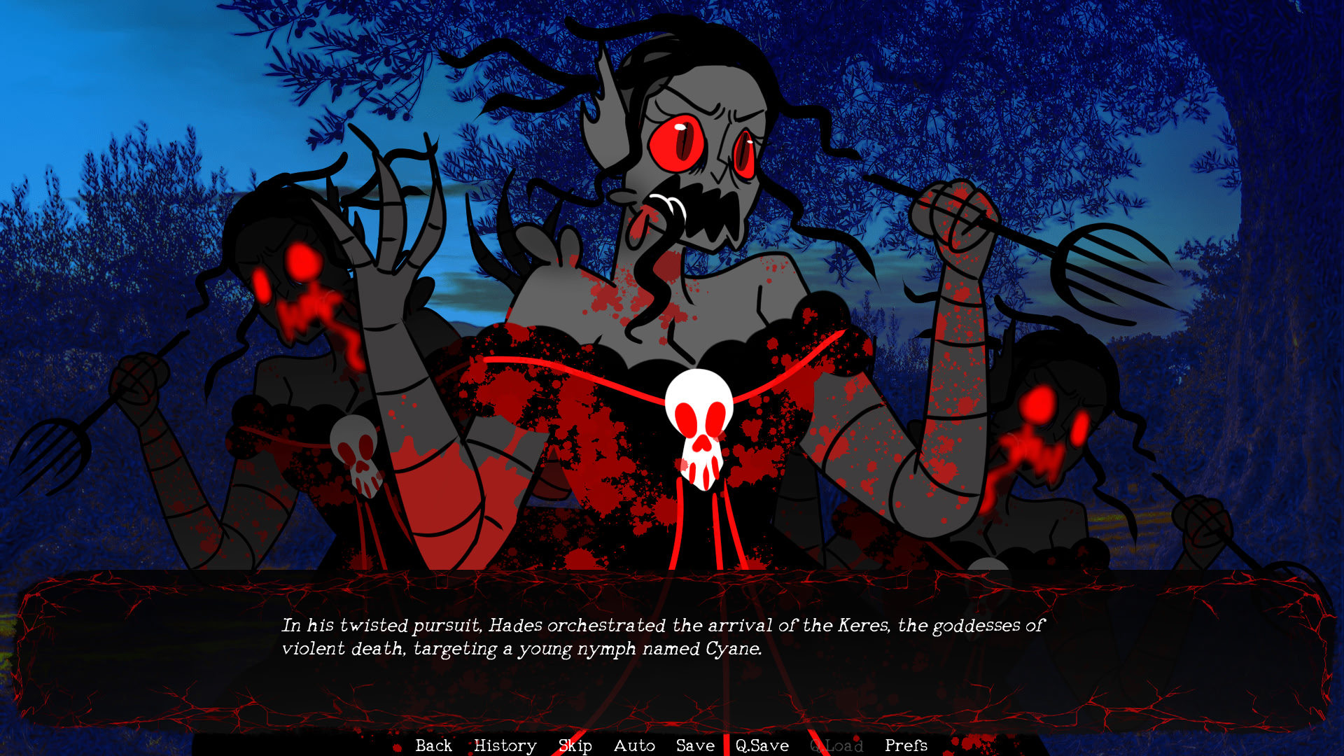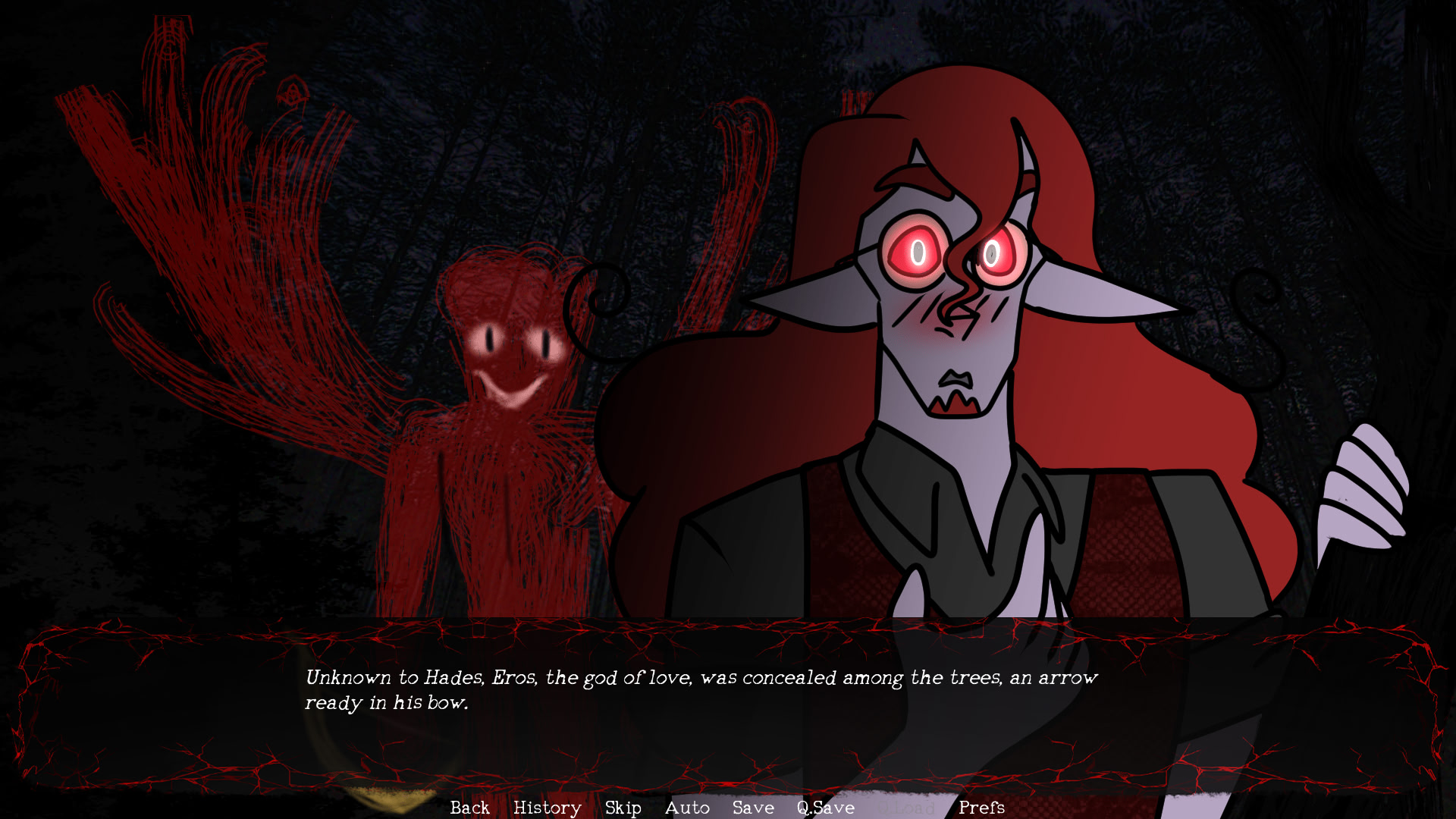 Persephone's Descent is a Horror Game based loosely on the myth of Hades and Persephone. You play as Persephone, a young spring goddess who enjoys a quiet life with her mother on their farm. But things change when you tend to your flowers one day and see a strange person covered in blood following you.