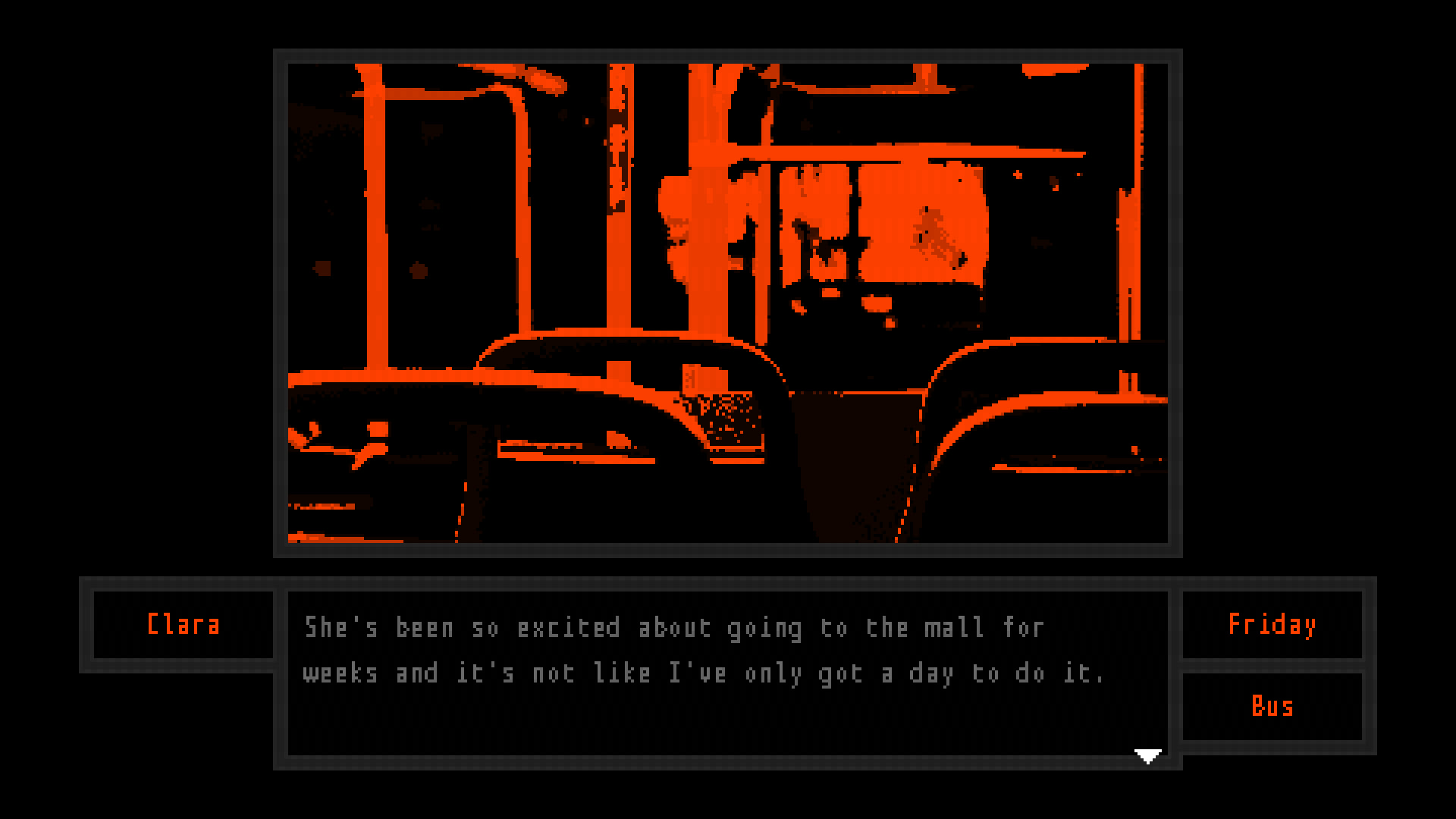 A visual novel following Clara, a girl with ADHD, as she races against a seven-day deadline to finish a school project. Your choices shape how she copes with life’s challenges and whether she succeeds. Itch.io]