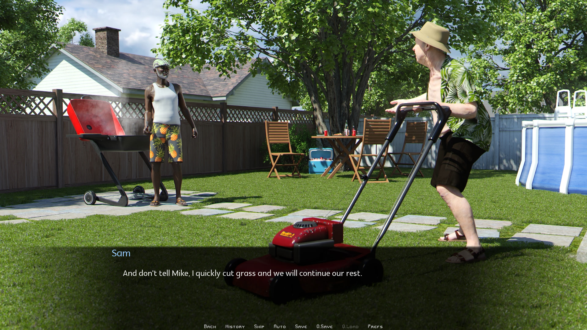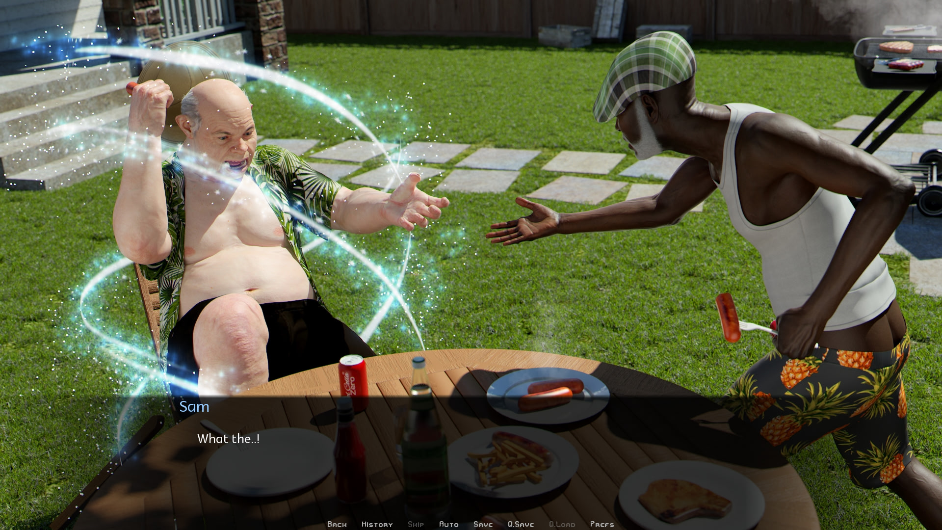 Two old friends were making barbecue. Next to them were two sexy babes who recently moved here. Having eaten a piece of unusual sausages, the case takes an unexpected turn.