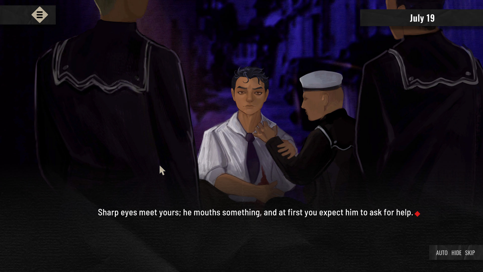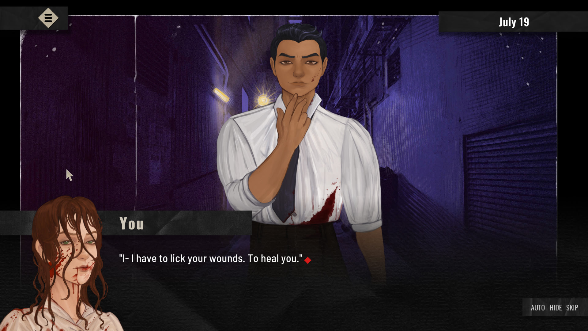 When you smell blood - a potential meal -, you find a local on the verge of death. After feeding on his attackers, you’re offered a job.