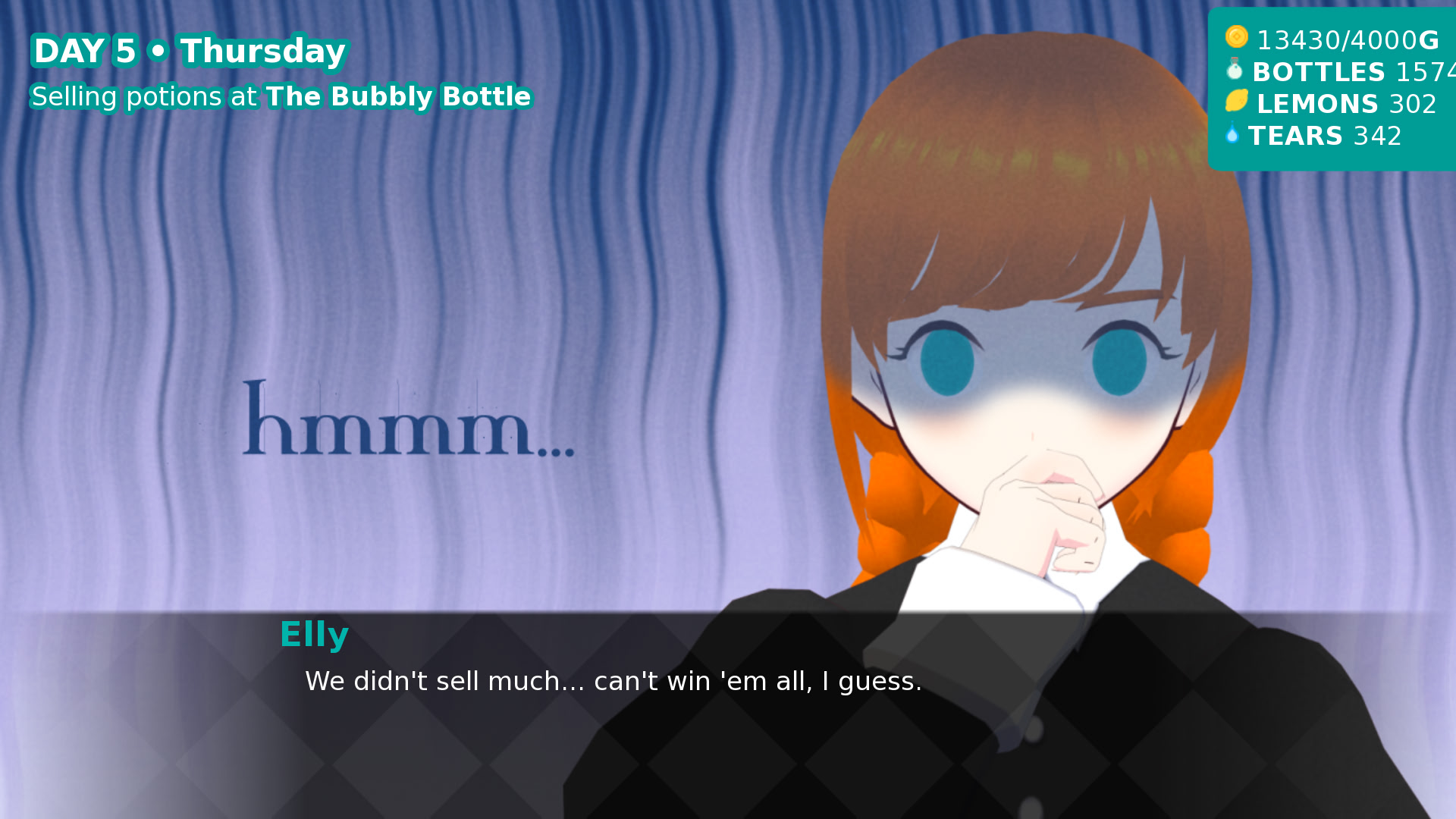 WitchCon is calling! You and Elly are ready… if only you had 4000G. No gold? No problem. Sell potions outside the dungeon and see if scrappy witches like you can make the money in time. Itch.io]