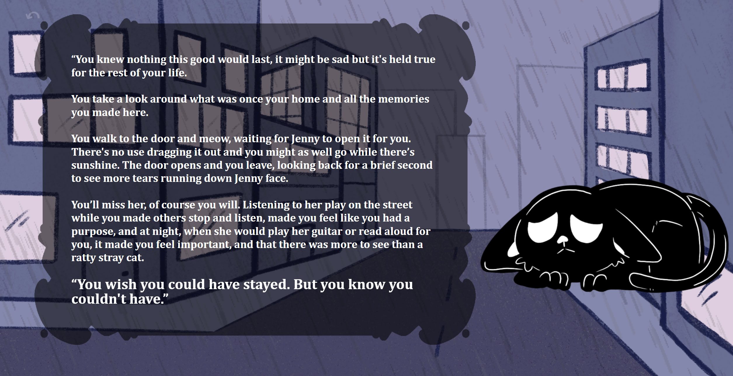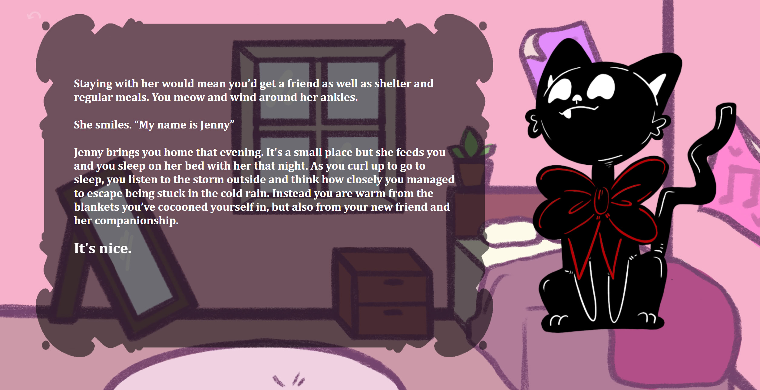 Experience the life of a stray cat trying to find the right home. Itch.io]