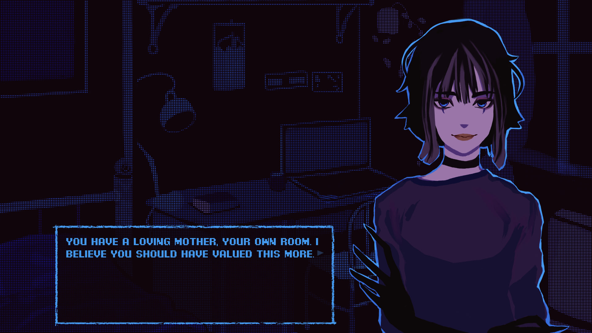 In a screenshot, you encounter a mysterious person. Who is she? Why is she in your home? Most importantly, why can't you remember anything? To uncover the answers to these questions, you must engage in conversation with her. Ultimately, the decision to trust her is up to you.