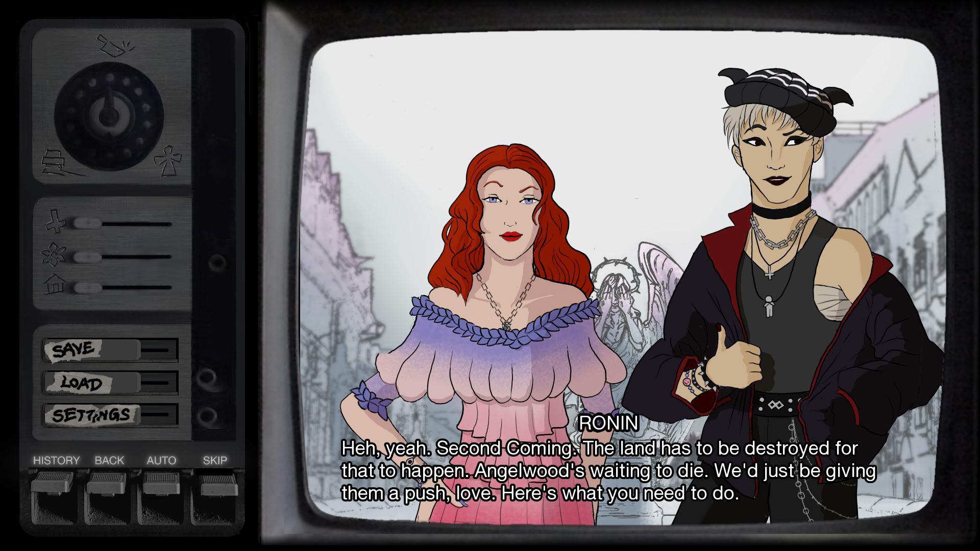 Suffocated and stifled in their small town's religiosity and ever-watching eyes, Ther desperately desires to escape Angelwood. Ronin provides them with a solution.