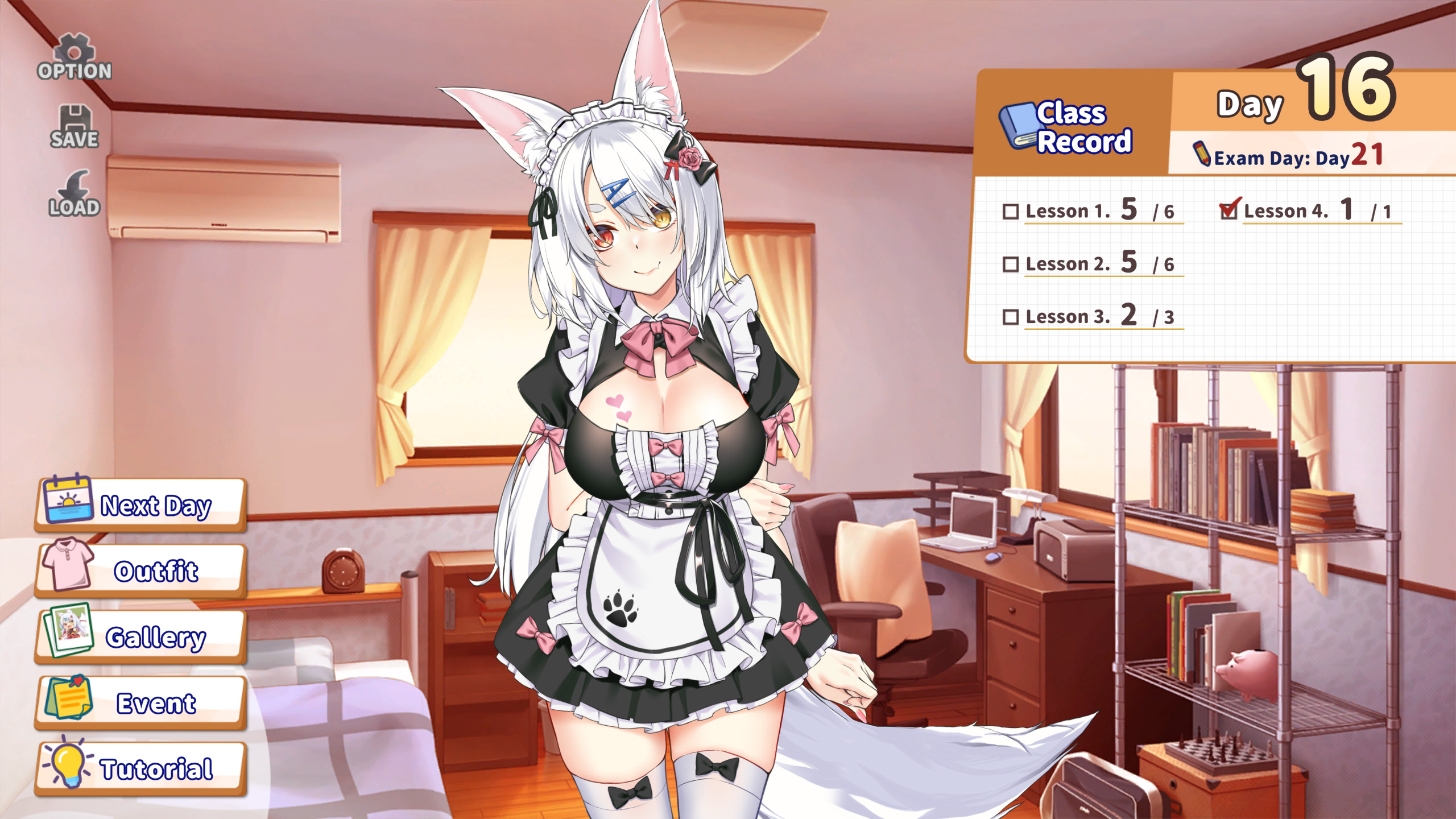 Try your best to complete the lessons and satisfy the fox spirit's desire! Get ready for a steamy summer vacation with this beautiful fox lady!