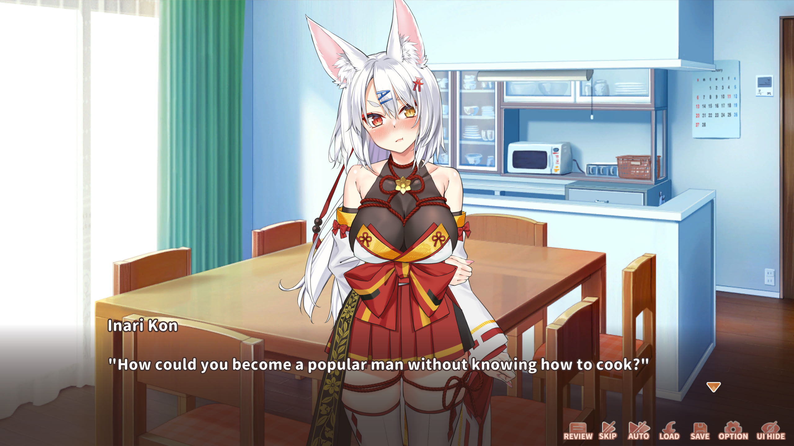 You were just watching TV on your sofa when the doorbell rings. You open the door to see an adorable silver-haired lady. "Do you have a wish to fulfill?" she asks. Before you know it you have signed a pact with her, the legendary fox spirit now promises to fulfill your wish, as long as you complete her lessons.