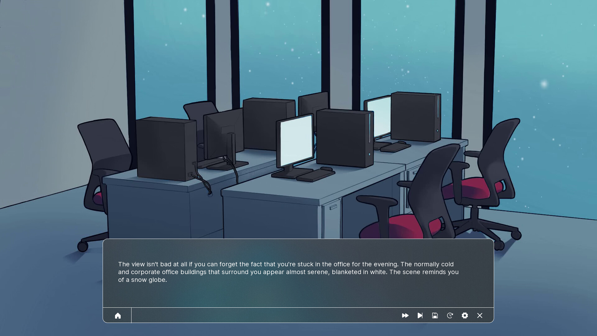 Graphic design was your passion. But now it's more like your prison as a timely snowstorm has left you and your coworker stranded in the office on Christmas Eve. It's not how you pictured you'd be spending the holidays, but it's better than spending it alone, right? itch.io]