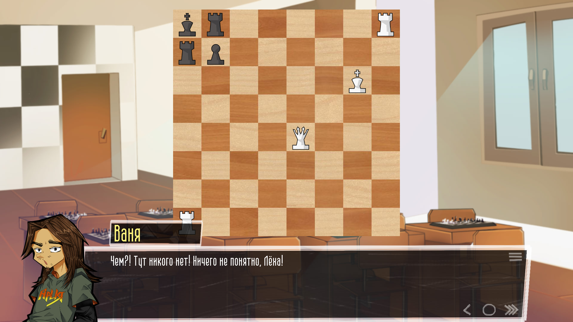 Having decided that it is already possible to relax, Alexey meets at the first meeting the mysterious Sasha Uglova - a girl who can't play chess, but is striving with all her might to comprehend such a difficult for her strategic discipline. Along the way, it turns out that very soon there will be a mini-competition, the final prize of which is still a mystery.
