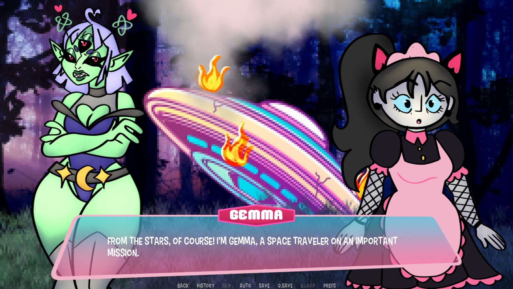 Crush Landed is a game about trying to date or befriend hot space aliens who crash-landed in your backyard. Oh, and there's a cute human astronaut too... itch.io]