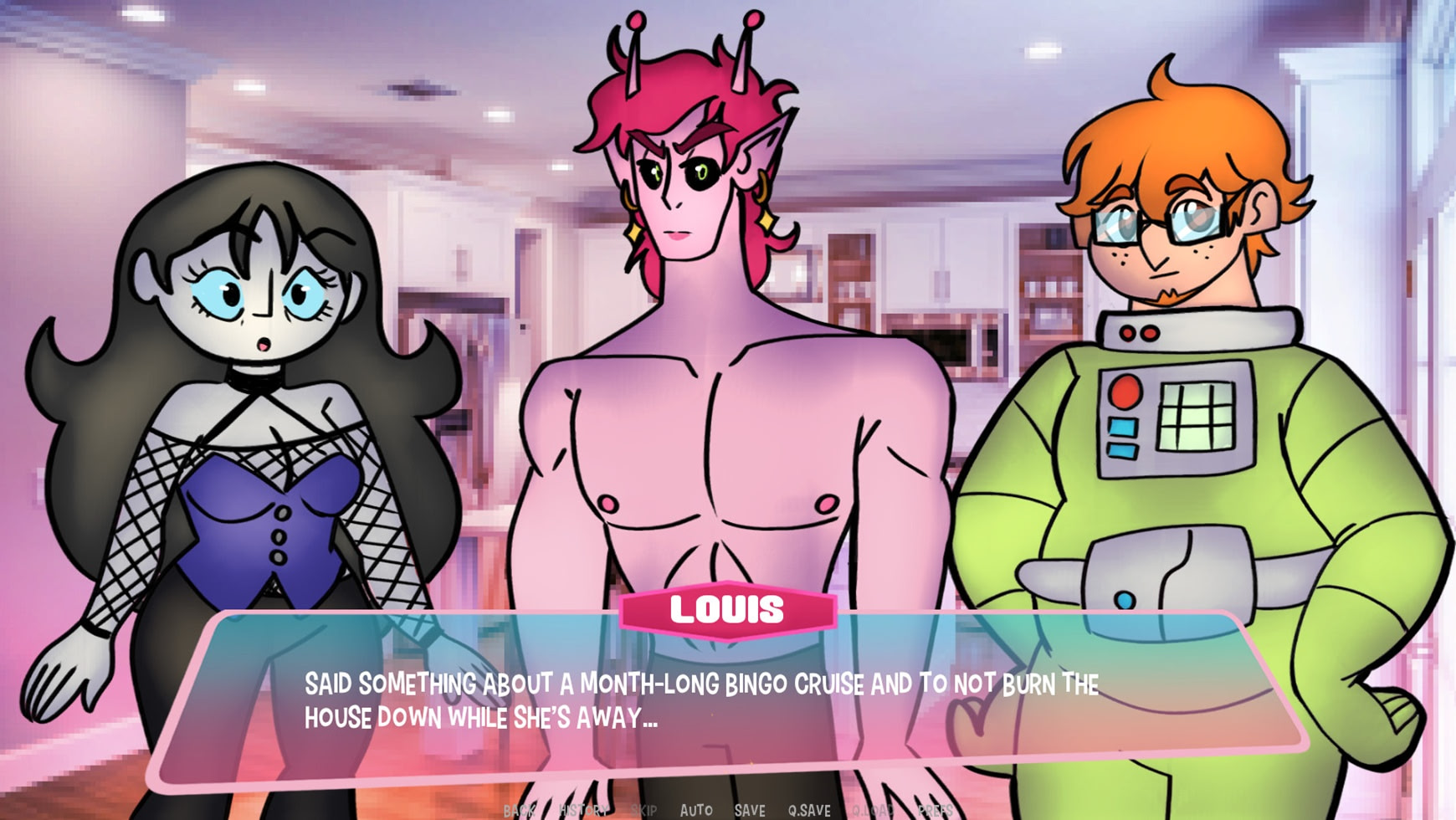 Crush Landed is a game about trying to date or befriend hot space aliens who crash-landed in your backyard. Oh, and there's a cute human astronaut too...