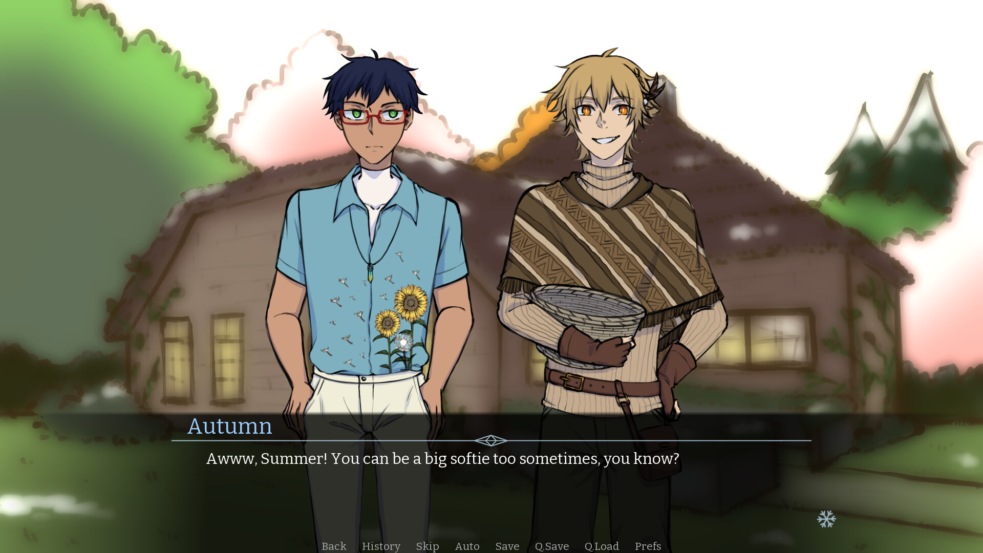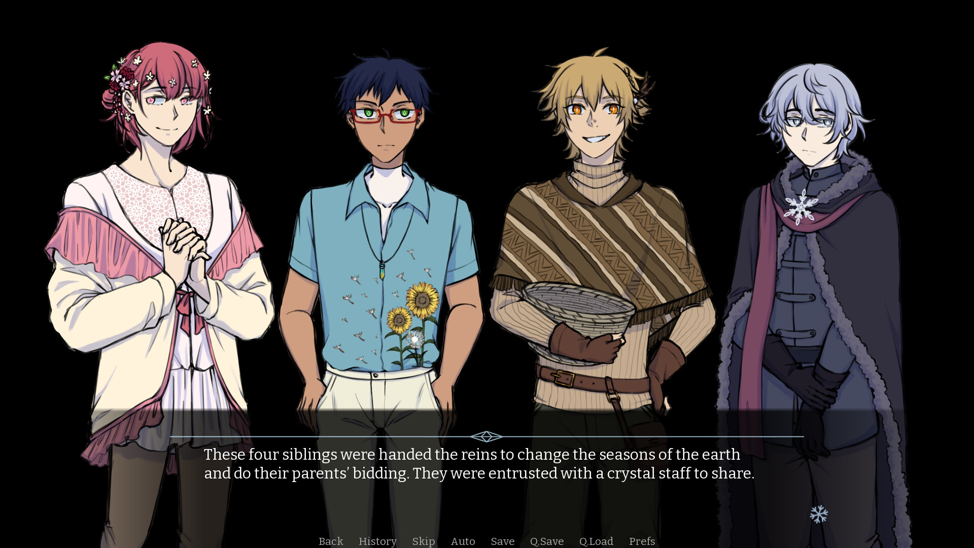 It's a chilly blizzard kind of night. And you're at home, eating a bowl of delicious stew your grandma made for you. Since the storm shows no signs of calming down, why don't you come and sit down by the fire? Grandma would like to tell you a story about Winter and their siblings. itch.io]