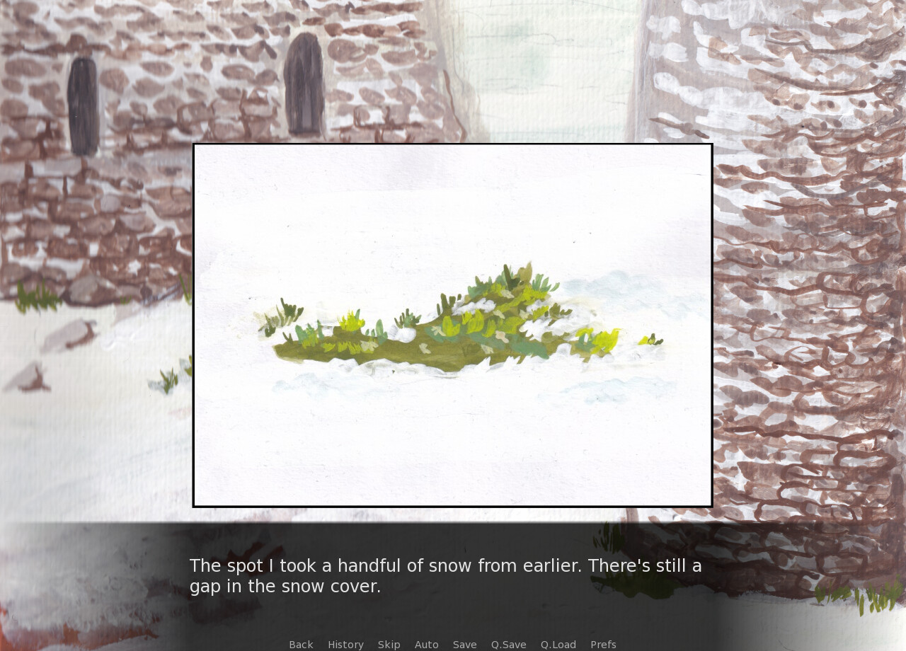 A hobby botanist comes across snow-covered ruins in the middle of summer and goes to investigate. itch.io]