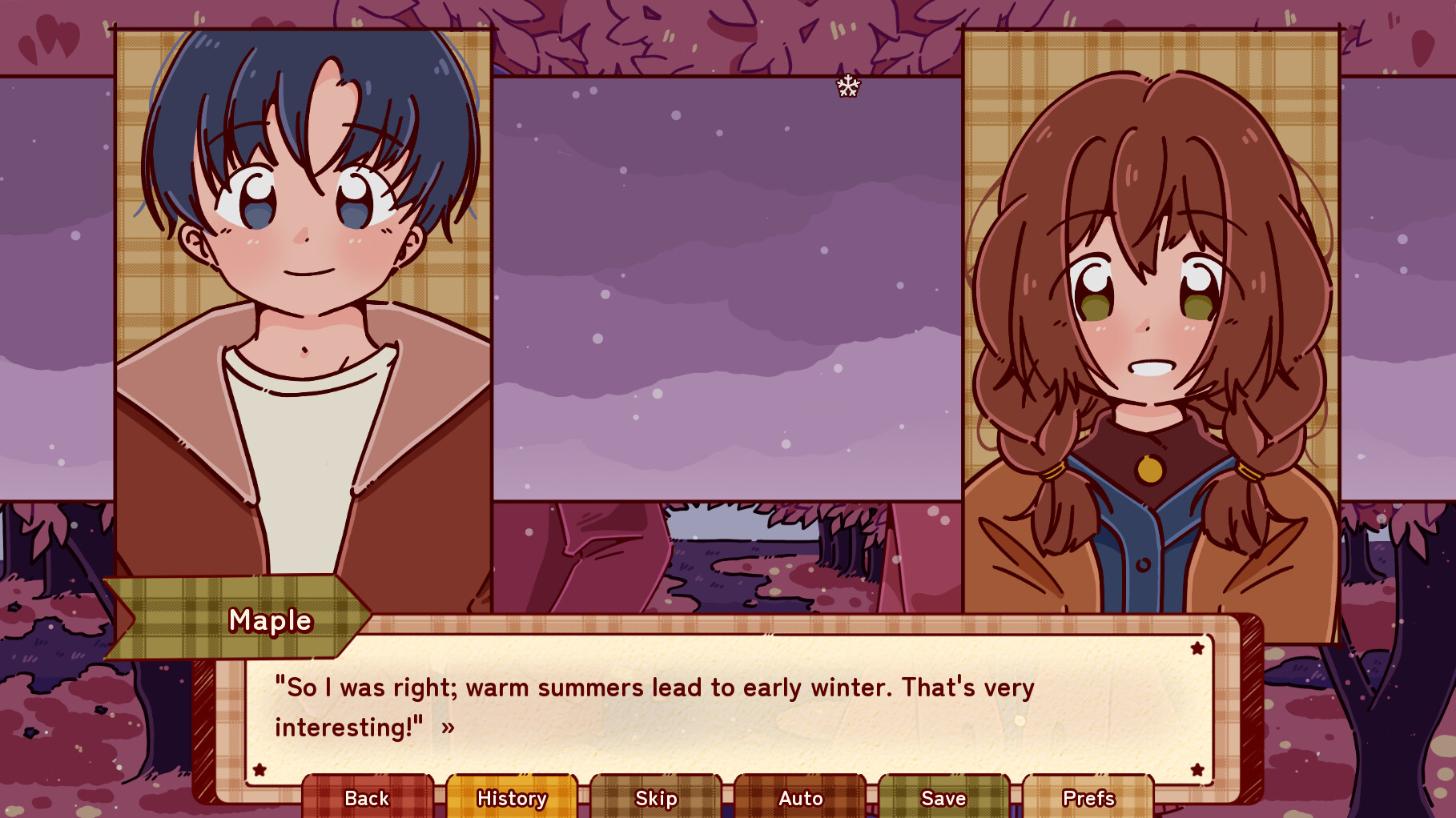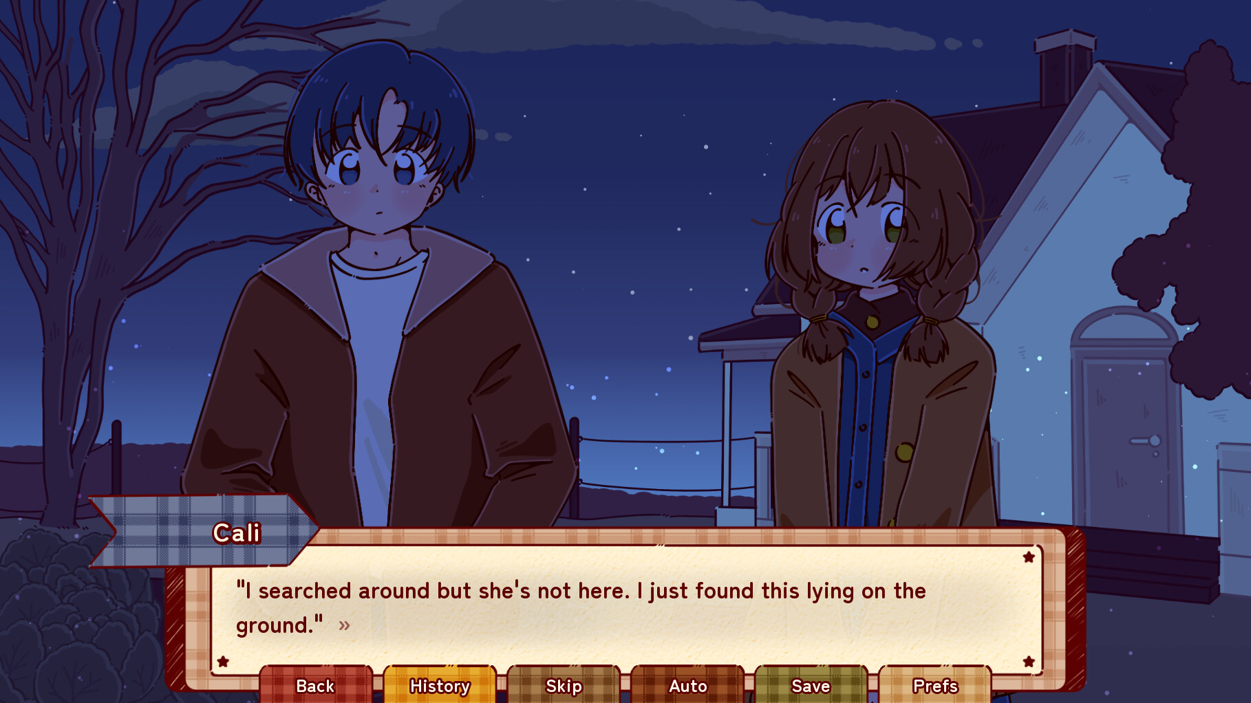 Maple and Mrs. Peregrine have been inseparable for years on end, and Maple adores her. But today, while the protagonist Cali went to go visit Maple, it turns out that Mrs. Peregrine has gone missing. She's old, and it's chilly outside, so the two head out to find her.