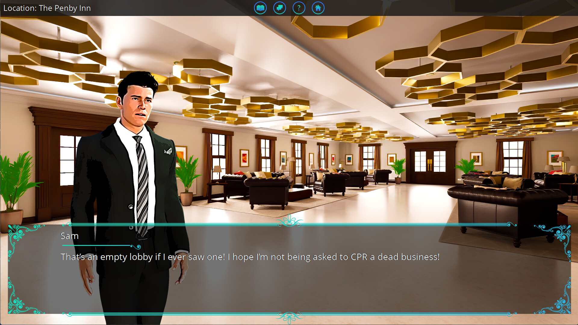 During the course of the game, you will join Samuel Sage to explore the hotel, examine evidence of hauntings, gather clues by talking to customers, contractors and employees; uncover scandalous secrets from his familial past and unravel the dark motives behind the horrific murder in Penby Inn. To take your mind off the grave and increasingly mysterious happenings, you can explore the charming history of the deliciously delightful Penby village and even indulge in a bit of spirited romance!