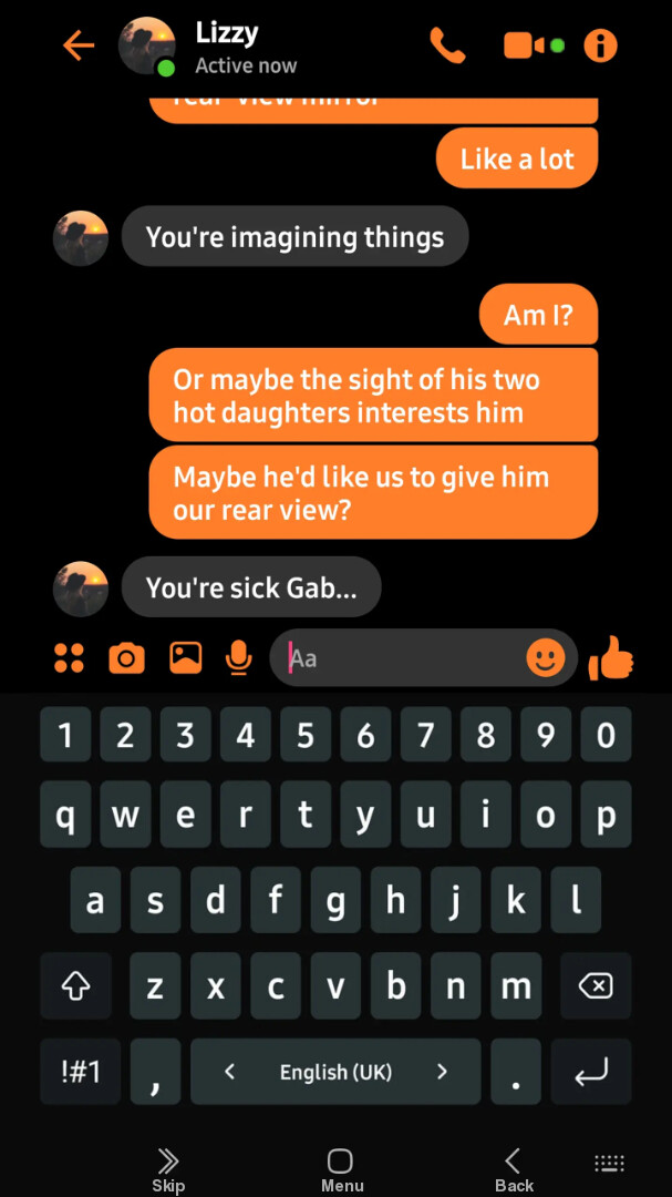 Lustful Phone is an erotic text-based game, taking place in the phone of Gaby, that you're gonna play as. She's a girl who knows what she likes, and will do anything to have what she wants. She's not like her best friend at all... Use her phone to chat with her family, or her sexfriends! Or maybe go match with some new faces on [s]Tinder[/s] DickFinder! Plan your date with Google, and write about it in your Diary! Will you unlock every pics in her gallery? You'll send nudes, receive nudes...