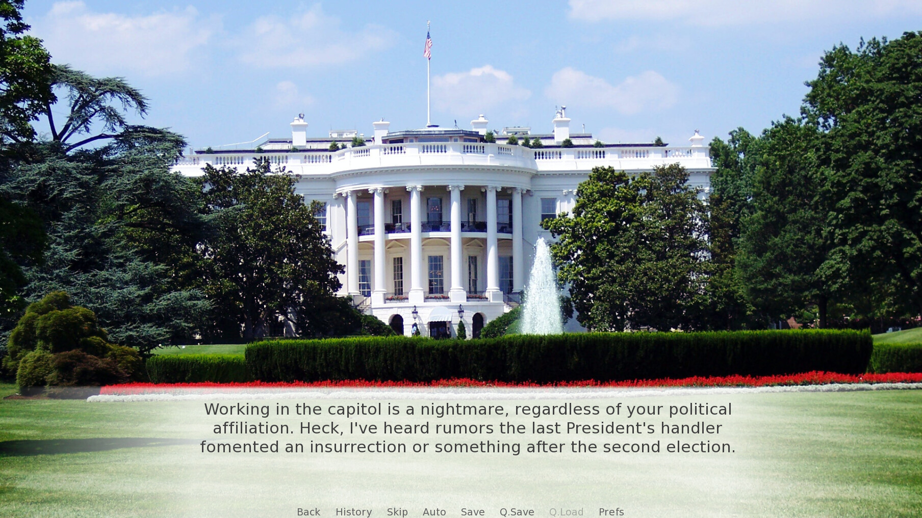 Being the President isn't a hard job—you just need to steer clear of any policy decisions, avoid insensitive comments on camera, and never, ever leave the White House. Any shmuck can do that. Except the current President, of course. Which makes your job much, much harder. A kinetic visual novel about the unsung bureaucratic heroes/villains/idiots that keep America running (straight into the ground).