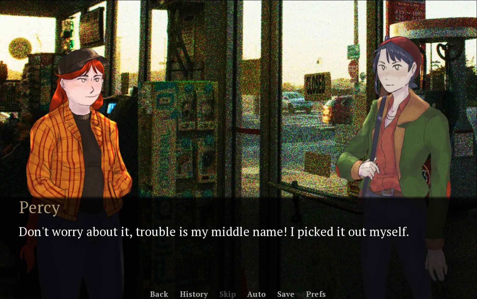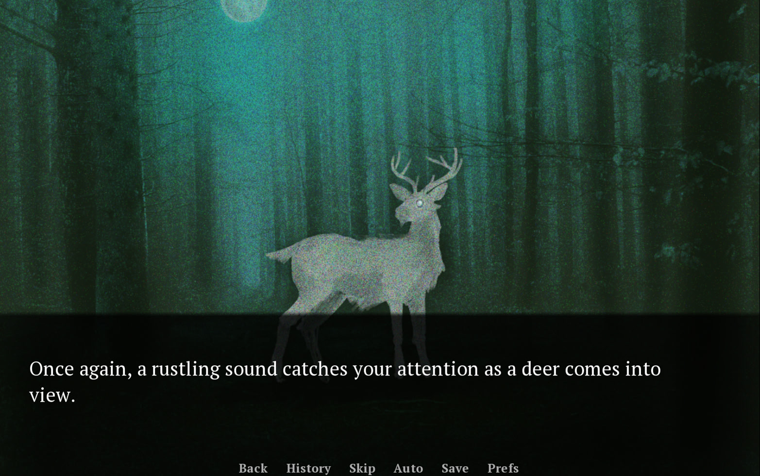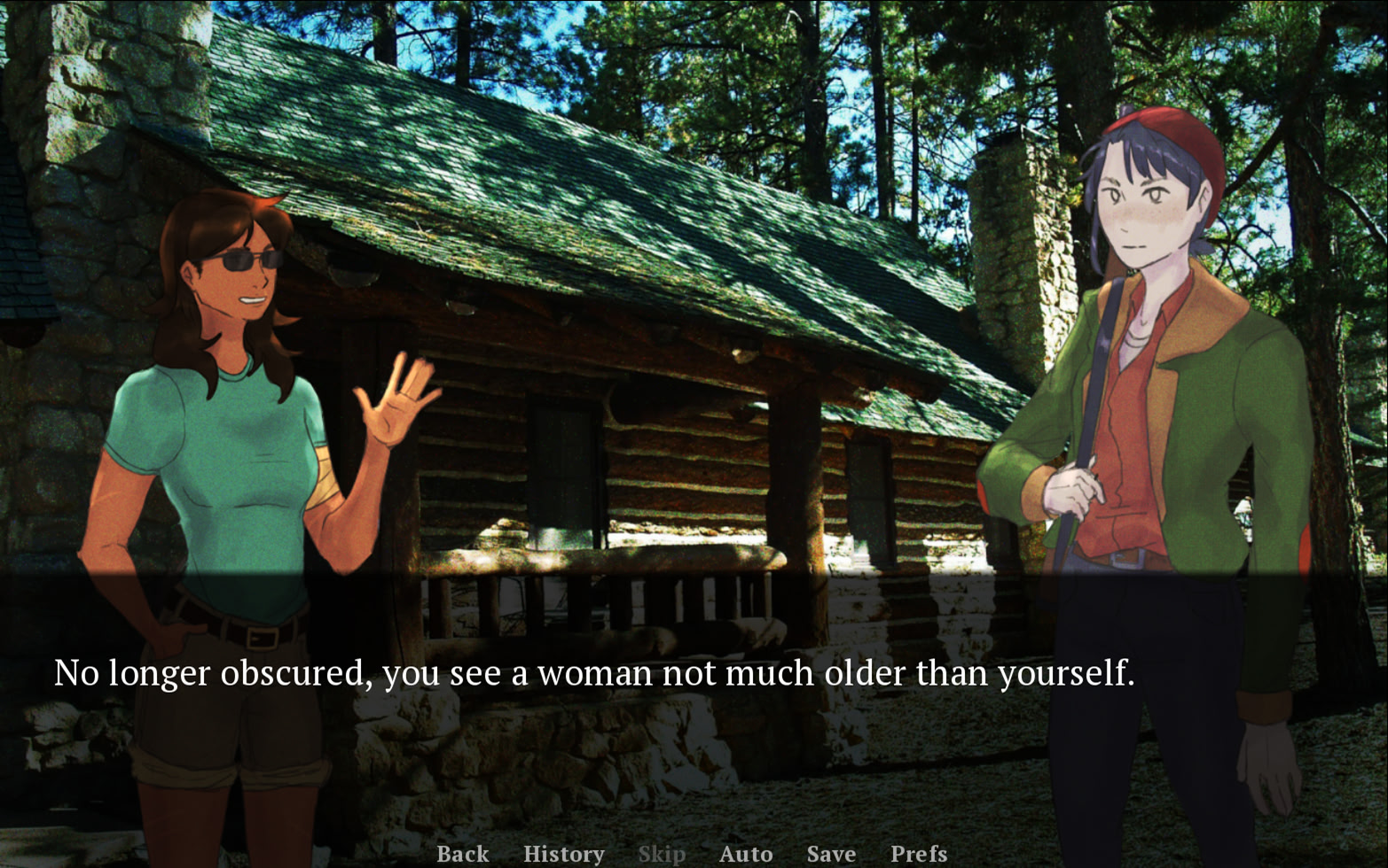 "The Scenic Route" is a rustic, horror dating sim where you play as Alex, a young woman participating in a hunting competition in the outskirts of civilization. Venture further into both the forest and the hearts of the townsfolk, and you may discover that you're not the only predator in these woods!
