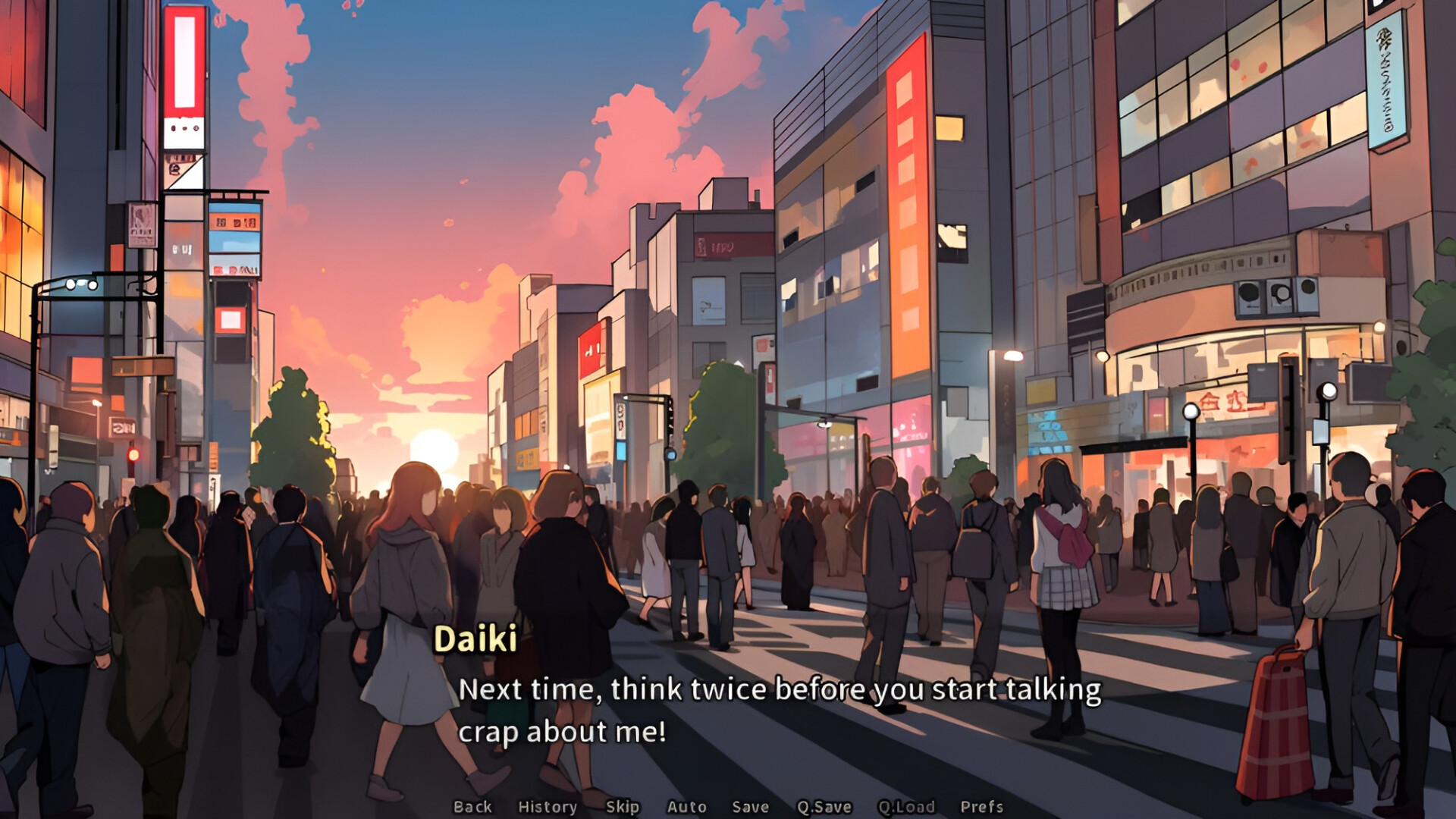 Daiki is a delinquent. One day, as he was walking home, he saw two men harassing a girl at night. So he beat them up senselessly and saved the girl. As he was about to go home, suddenly, he realized that the girl was a super popular idol who was also her schoolmate! How troublesome! Daiki has no int...