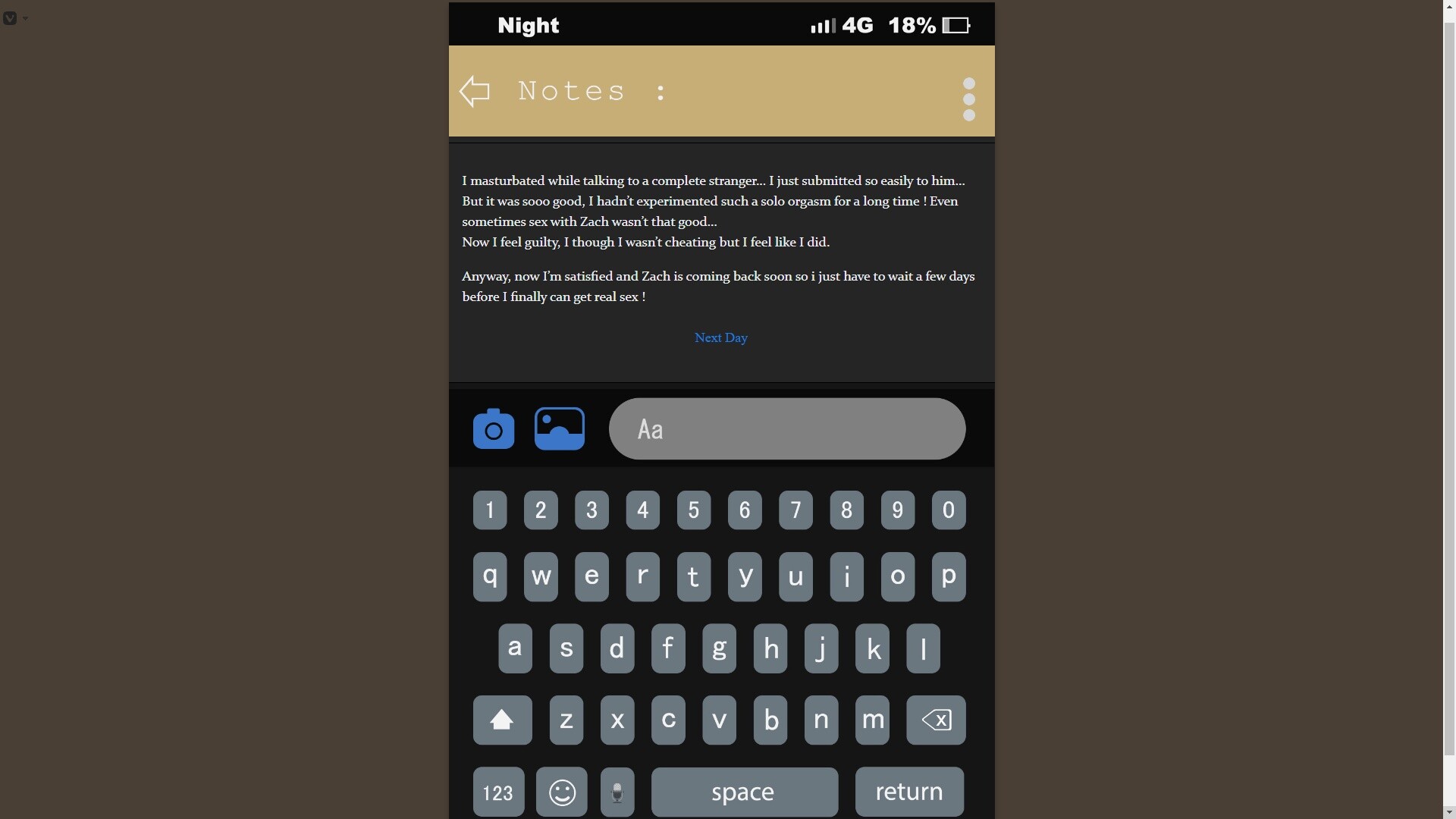 In this visual novel you'll get into the skin of a young girl who used to be a sex addict. You'll take control of her everyday life and decide either to lead a faithful life and have a lot of fun with your boyfriend and maybe even corrupt him... Or to fall into temptation and live a lot of adventures.
